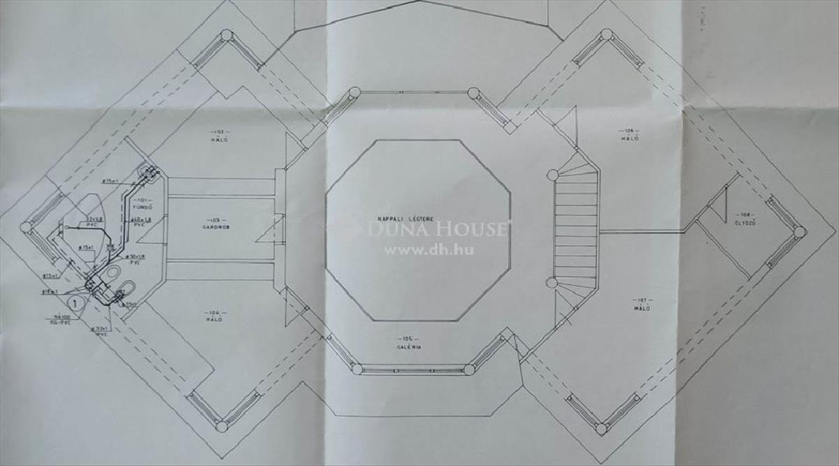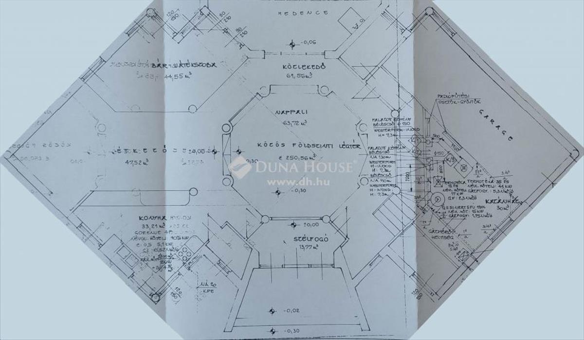 A ház 1990-es évek elején épült. a földszinten egy légtérben található a konyha, az étkező, a snooker asztal, a bár és egy kis szint süllyesztéssel a nappali. Az épület dísze az egyedi, oktogon tetőszerkezet, melyet egy kb. 4 Méteres mestergerenda biztosít. Az épületen belülről megközelíthető a fedett, 50 m3-es feszített víztükrű úszómedence.
