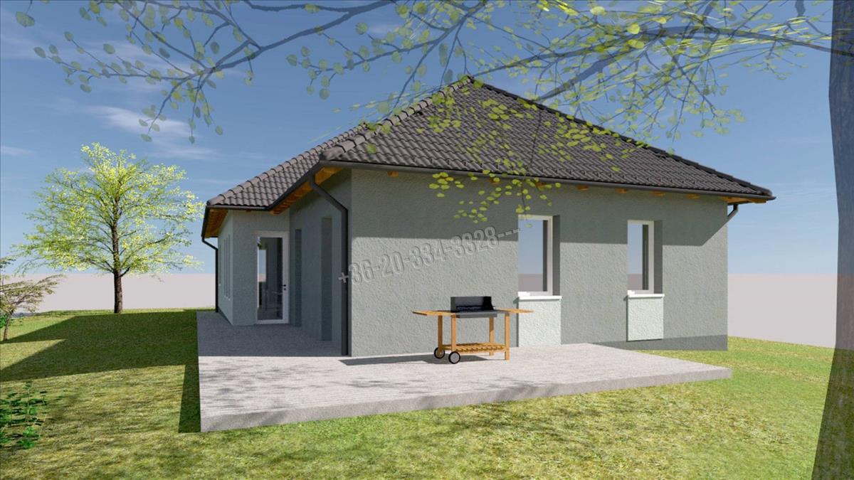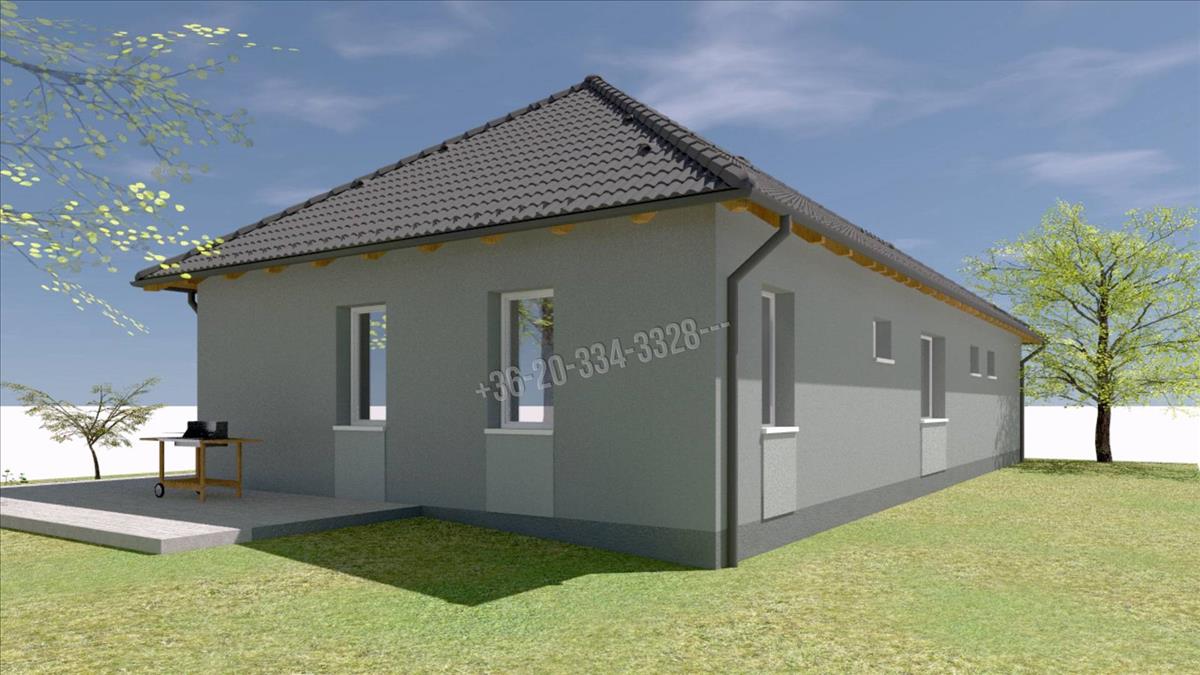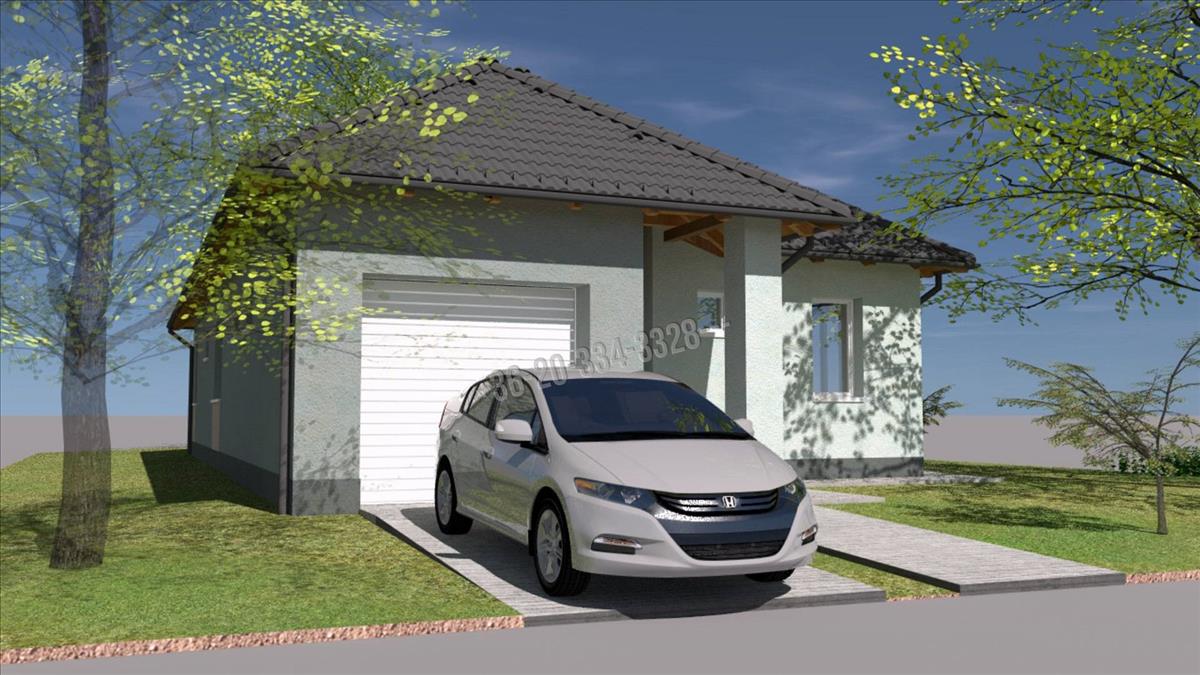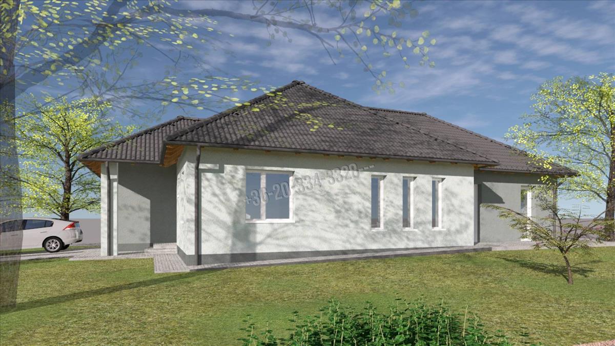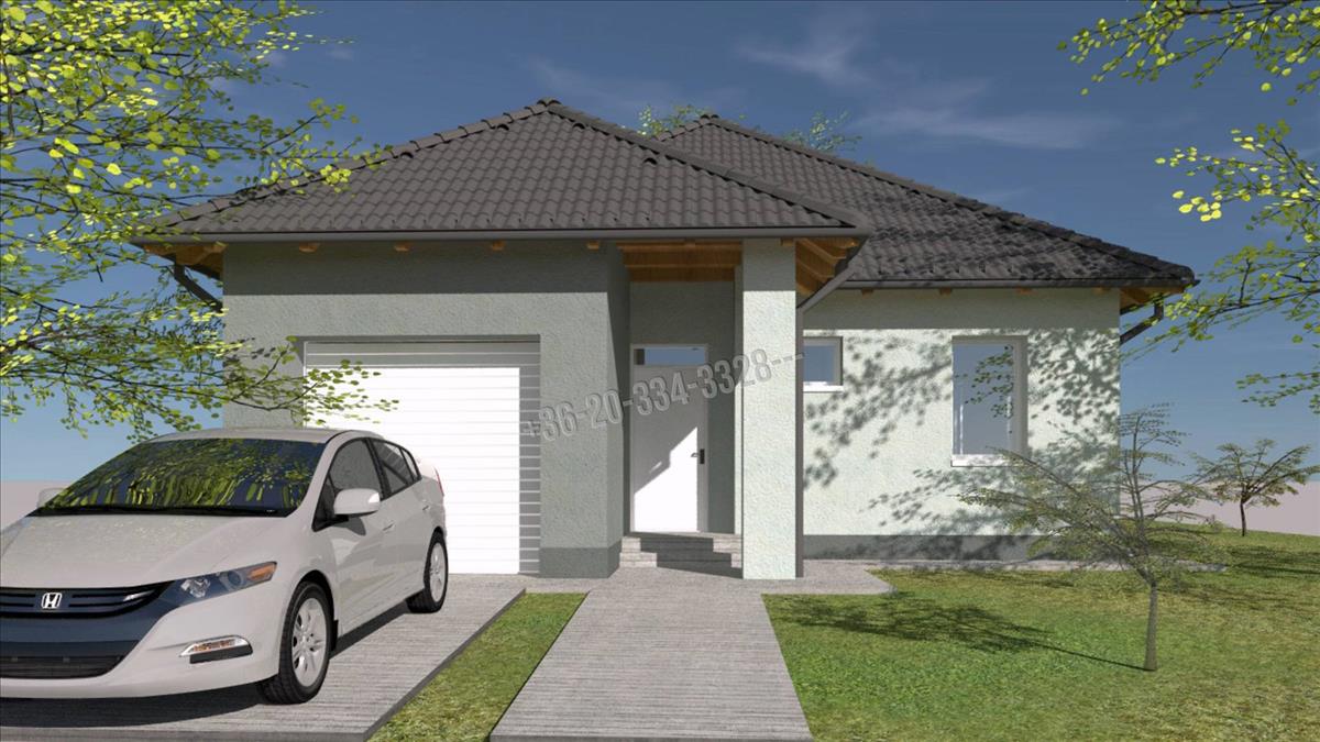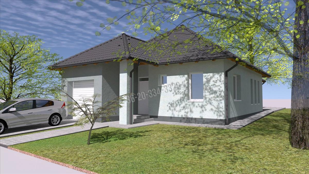 -42 nm-es amerikai konyhás nappali, kamra, 4 szoba, fürdőszoba, mosókonyha, vendég wc, előszoba-közlekedő, garázs.