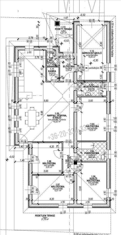 A lakótér 110 nm + 16. 5 Nm garázs, + 5. 24 Nm fedett, 22 nm-es fedetlen terasz.