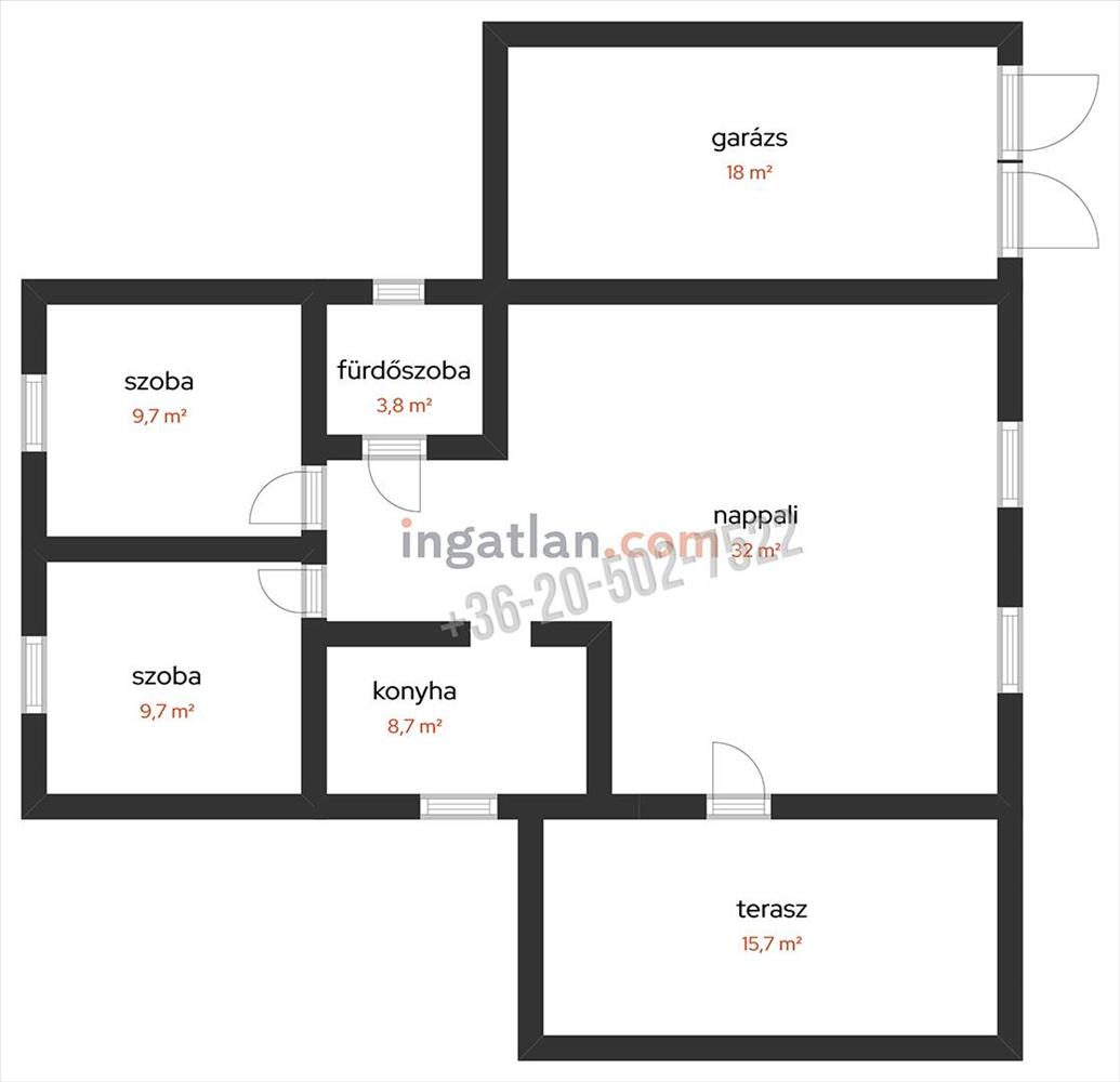 A ház teljes területe 137 nm (lakótér 71, pince 33, garázs 18, fedett terasz 15 nm).