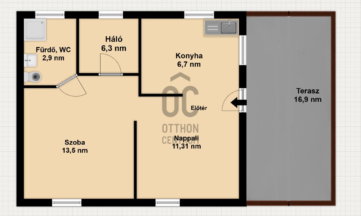 • Alapterület:46 m2