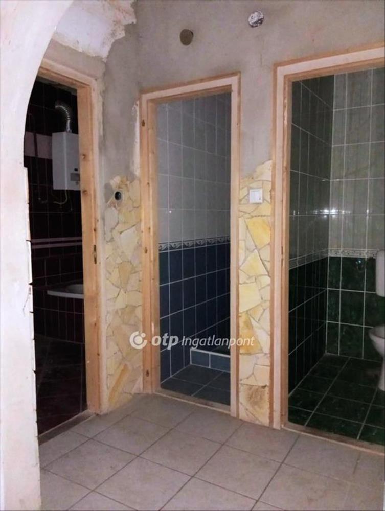 A szilikát falazatú lakóház 1975-ben épült, tetőszerkezetét cserép héjazat borítja. a házon belül 2 szoba, 1 tágas előszoba-nappali, 1 konyha, ezenfelül 1 sarokkáddal felszerelt fürdőszoba, 1 külön bejáratú tusoló, és 1 wc került kialakításra, melyek egy kisebb előtérből nyílnak. a konyhából a franciaablakon át 7, 25 m2-es teraszra lépünk ki, mely közvetlenül a kertbe vezet. a szobákat és a nappalit parketta, a többi helyiséget járólap burkolja. a nyílászárók fából készültek, az ablakok elé redőnyt rögzítettek. a 15 évvel ezelőtt felújított - és azóta sem használt - vizesblokk helyiségei újszerű állapotot tükröznek. a melegvizet átfolyós, gázüzemű bojler biztosítja. a fűtésről radiátoros hőleadással egy szénkazán, és egy gázkazán gondoskodik. Az ingatlan jelen állapotában nem költözhető, a vizes helyiségek kivételével teljes körű tatarozásra szorul. a jó elrendezésű, tágas, napfényes terekkel rendelkező ház kiváló felújítási alapot kínál. a per- és tehermentes ingatlan a teljes vételár megfizetését követően azonnal birtokba vehető.