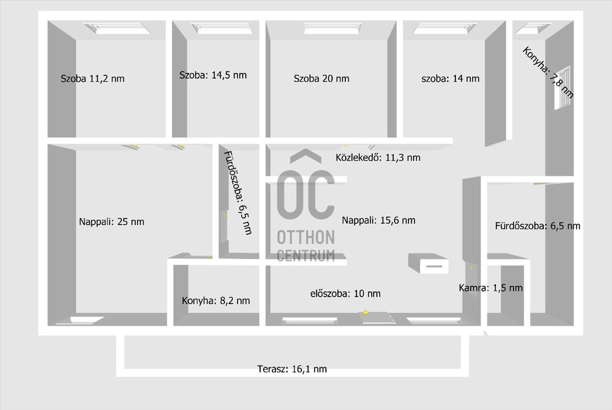 Az ingatlanban összesen 6 szoba, 2 fürdőszoba és 2 konyha található, ami az alábbiak szerint tevődik össze: