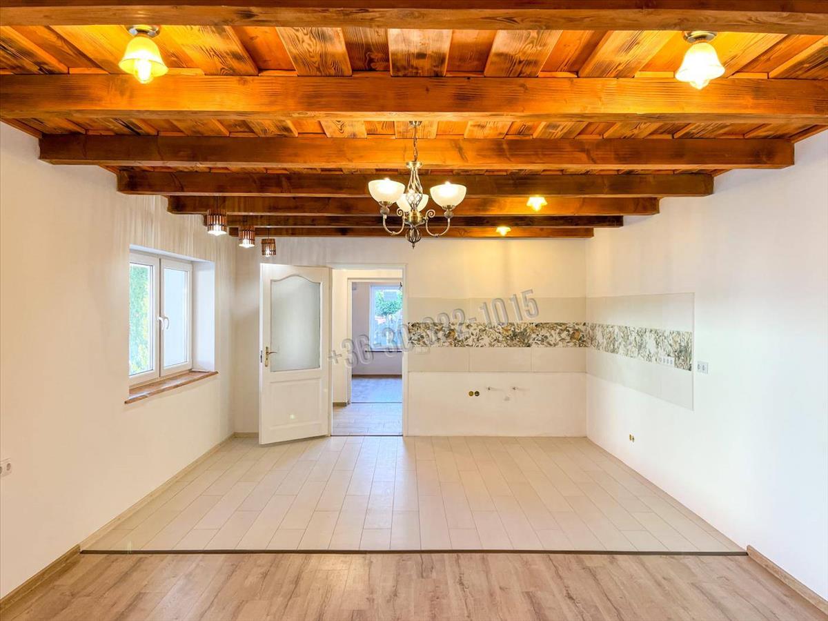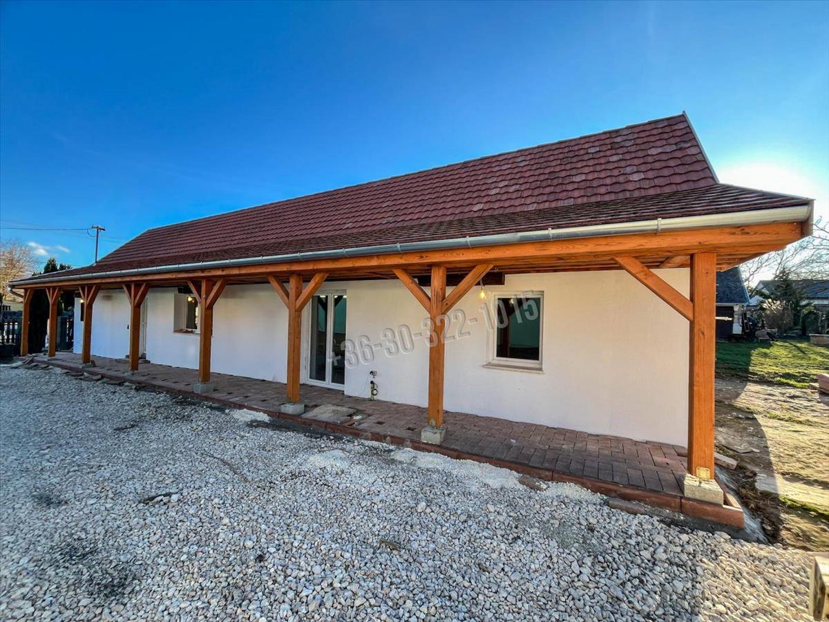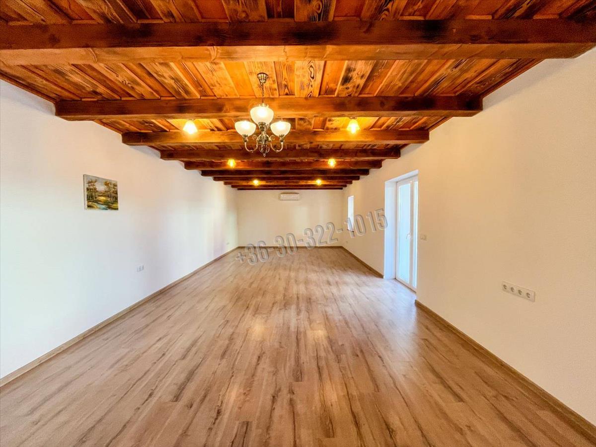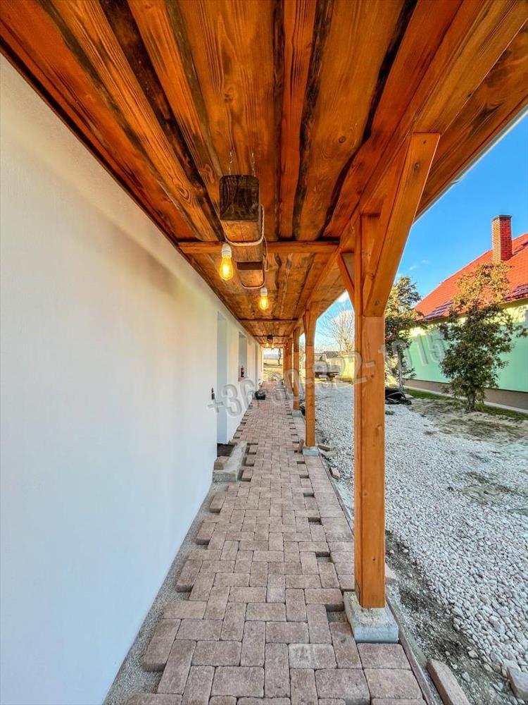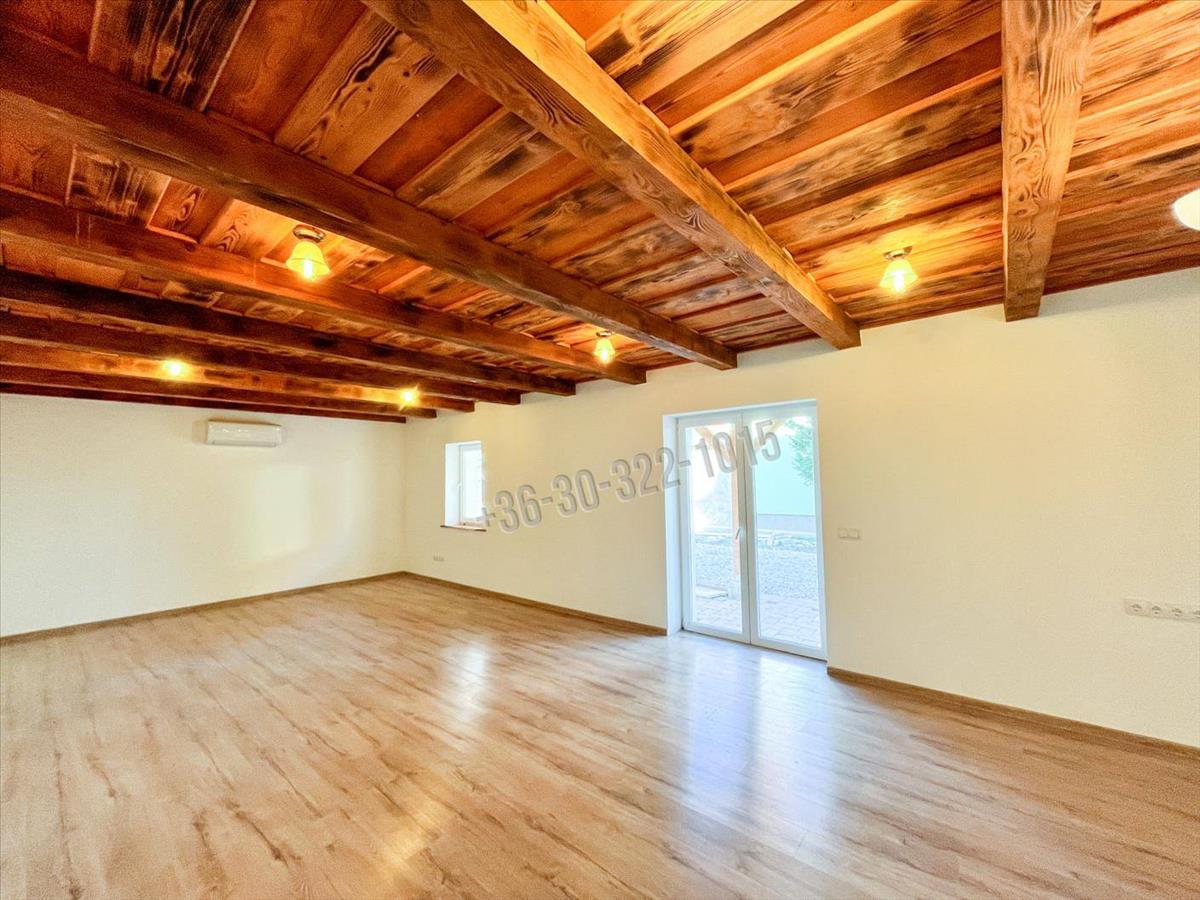 Stílus és hangulat: Egyedi belsőépítészet, látványos fagerendás mennyezet és egy 28 nm -es hangulatos tornác adja meg az ingatlan rusztikus, mégis modern karakterét.