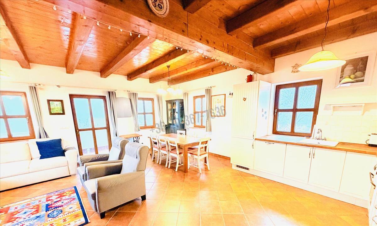 A ház belső tere egységesen tovább viszi a külső tradicionális karaktert, minden helyiségben látszó fafödémmel, természetes, meleg hatású fa felületekkel, így a modern kényelem és a hagyományos forma itt valódi értéket képvisel
