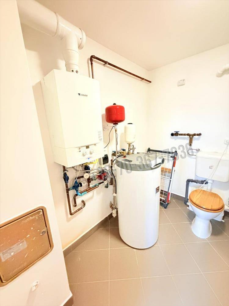 Fűtés: Junkers kondenzációs kazán új melegvíz-tárolóval, padlófűtés a lakótérben, radiátorok a hálókban, (telefonról vezérelhető)öntöttvas kandalló,