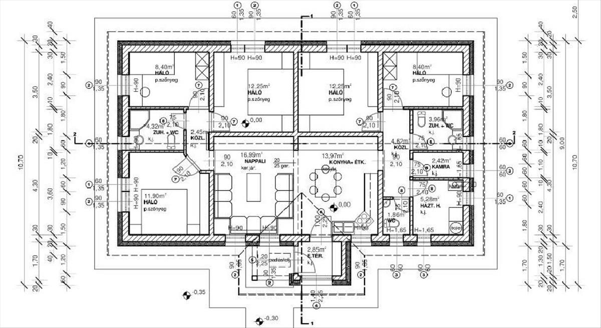 - nyílászáró: 3 réteg üveggel, hőáteresztés: 0, 6 W/m2 K