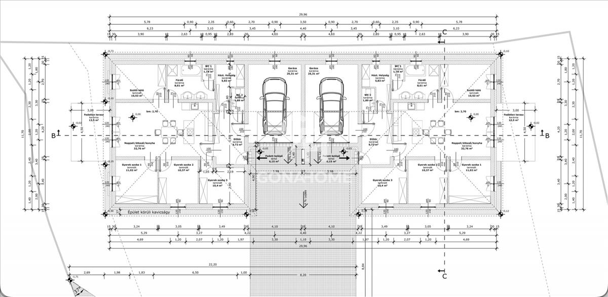 ELRENDEZÉS (mindkét lakás azonos alaprajzzal):