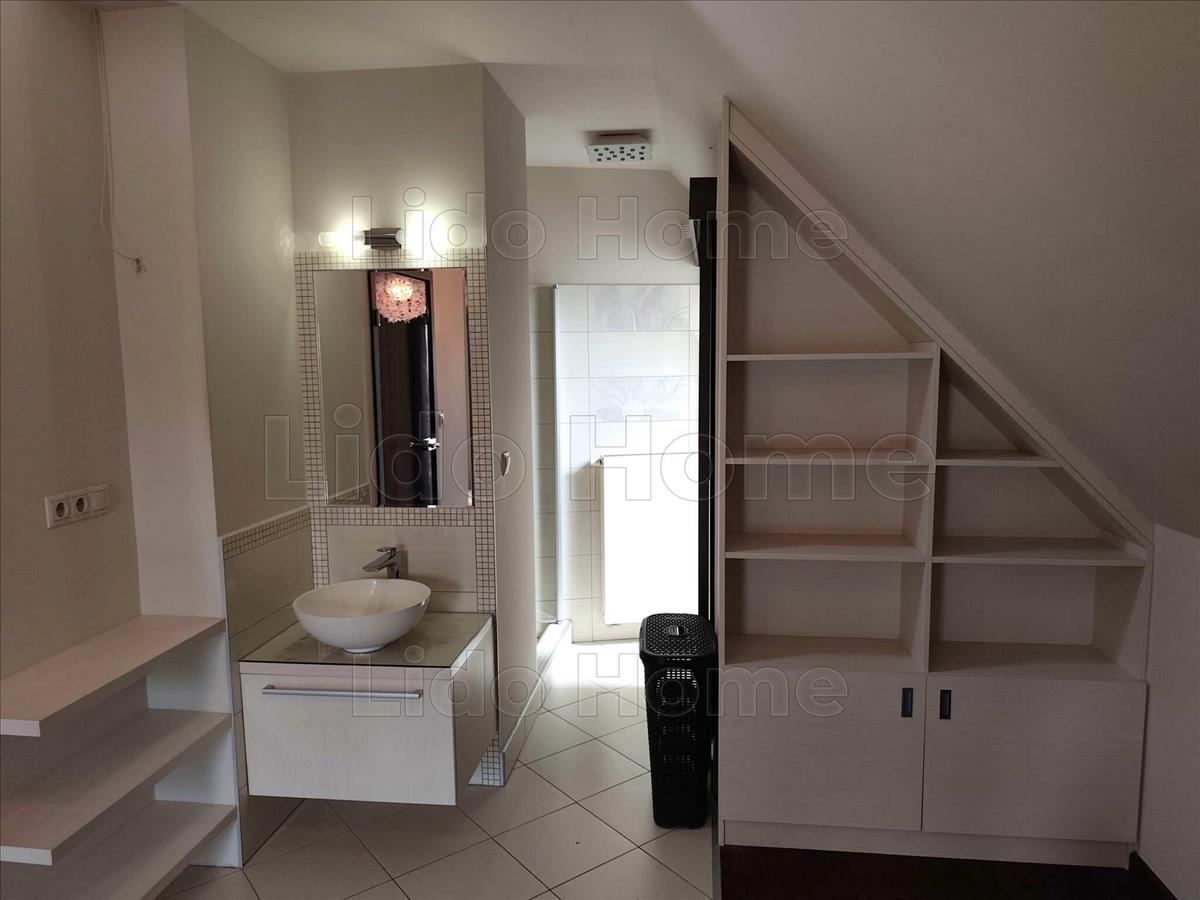 -A tetőtérben egy világos, nagy méretű szoba, előtér, valamint fürdő és wc került kialakításra.