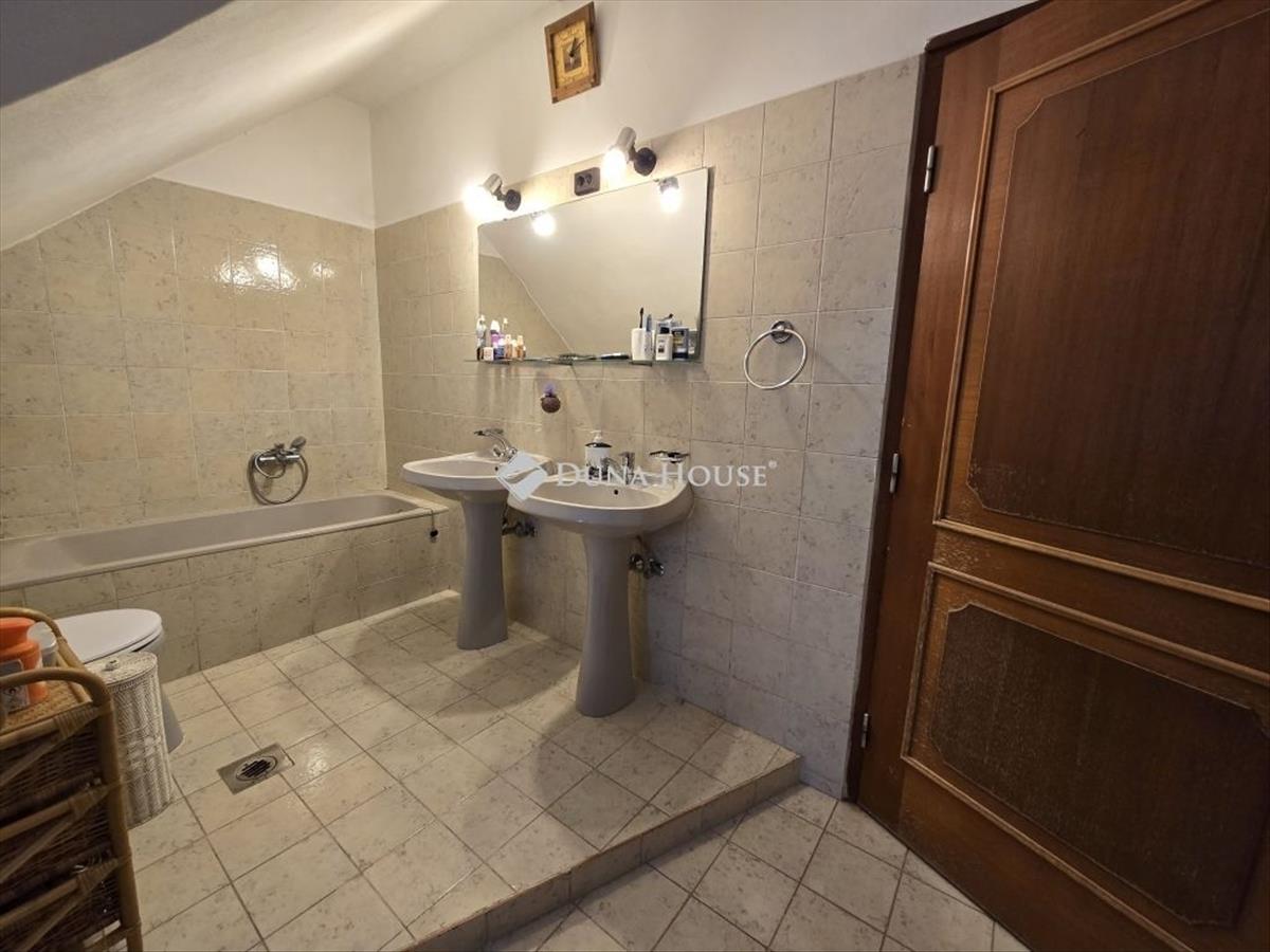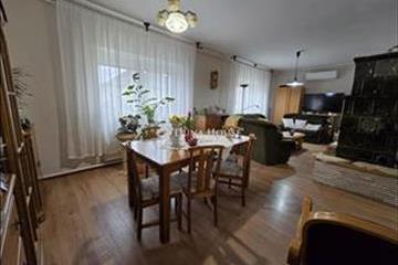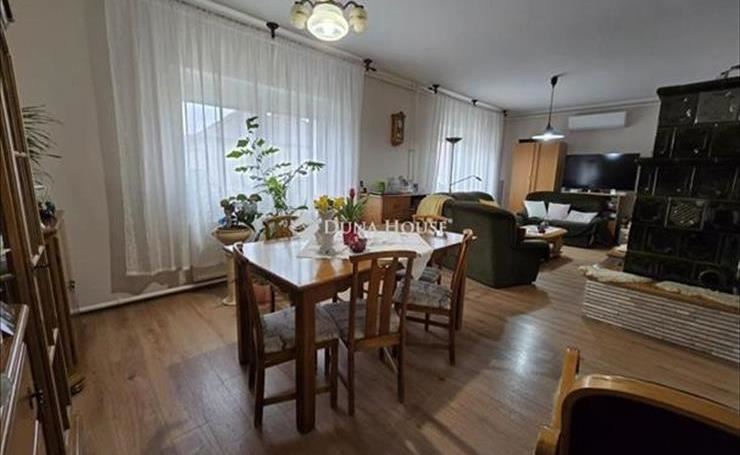 Eladó Veszprémben a Dózsavárosban egy kétszintes családi ház 535 nm-s telekkel. a ház a 70-s évek elején épült téglából, beton födémmel, beton (bramac) cserép fedéssel. Lakható, nettó alapterülete 154 nm. a hátsó udvarában kiegészült egy 24 nm-s garázzsa, mellette 20 nm-s fedett beállóval, valamint 15 nm-s műhely résszel. Utóbbiakat a főépülettel egy 21 nm-s bolti (de lehet irodai is)egység köti össze. Ennek előterében 28 nm-s fedett terasz lett járólappal burkolva. a bolti rész alatt 10 nm-s pince is megtalálható. a bolt fűtése külön kis vegyes kályhával működik. a ház 1988-ban teljes felújításon esett át, majd a későbbiekben több lépcsőben történtekmég felújítások. -Fűtés korszerűsítés-ablakcserék-fürdők felújítása-cserépkályha építése kiegészítő fűtésnek-hűtő-fűtő klímák elhelyezése-elektromos kapu-biztonsági kamerákA fő fűtés és a meleg víz termelés kombi gázkazánnal üzemel radiátorok segítségével. a praktikusan és szépen megépített cserépkályha be van csövezve a radiátoros rendszerbe, így rá tud dolgozni a központi fűtésre. Téli hosszas estéken olvasáshoz, kupaktanácshozideális hellyé válik. Ezen kívül a fűtő-hűtő klímák is jó szolgálatot tesznekaz átmeneti időszakokban. a fűtési teljes rezsiköltség 9000 Ft/hó gázdíj és hozzá 150 e. Ft/ éves tűzifa költség. a földszinten egy nagy méretű (35 nm) nappali + étkezőt magában foglaló, egy légterű helyiséget találunk. Emellett egy nagyobb konyha, egy közös, zuhanyzós fürdő wc és egy kamra áll, amiket hosszanti előtér köt össze, melynek közepén van a lépcsőfeljáró. Az épületbe bejutni fedett, zárt előtéren keresztül lehet. a tetőtérben 3 nagyobb szoba és egy közös, kádas fürdőszoba wc lett kialakítva. Az egyik szoba kiegészül egy közepes méretű gardróbbal is. a tetőtéri fedés 20 cm kőzetgyapot szigetelést kapott. a ház méretéhez mérten kedvező áron üzemeltethető. Ajánlom pároknak, lakásból kiköltözni vágyóknak. Az udvar mérete éppen optimális. Összeköltöző családoknak is figyelmébe ajánlom. Ha igény van rá, akkor egy szobányi terület visszaalakítható a tágas nappaliból. Ovi, suli, boltok, orvos, gyógyszertár, tömegközlekedés mind-mind nagyon közel megtalálható. Egyéb részletekkel kapcsolatban és megtekintési igénnyel is kérem keressen elérhetőségemen! FIX 3% lakáshitelre megvehető