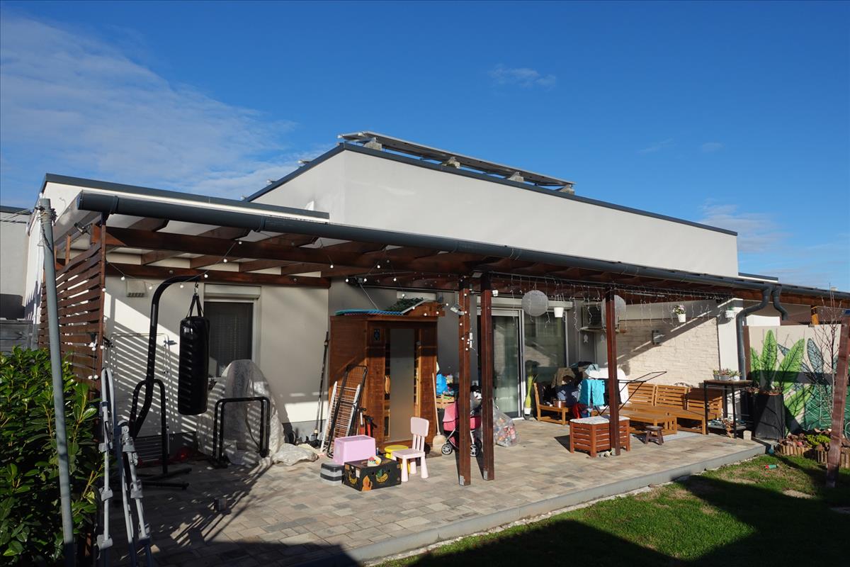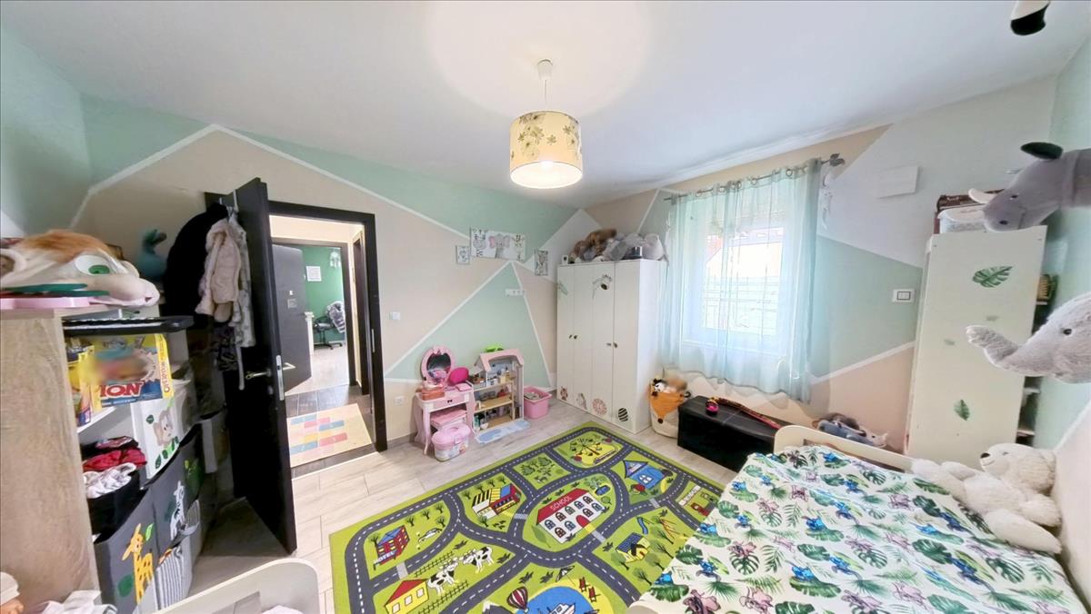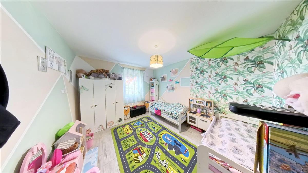 A nappali sarkában vezet fel a lépcső a 31 m2-es galériára, ahol a belmagasság 156 cm. a galéria kiváló teret biztosít a gyerekeknek játszótérként, illetve gyerek hálóként. a nappali bejárat felőli részéből egy kis közlekedőn keresztül nyílik a másik két szoba, valamint a valóban tágas, zuhanyzós, modern fürdőszoba. a ház fűtéséről padlófűtés gondoskodik, mely elektromos kazánról és gázkazánról egyaránt működtethető. A ház tetején éves elszámolású, 5 kw-os napelem rendszer van, melynek köszönhetően a villanyszámla az öt tagú családnak közel 0 ft! a nappaliban és a szobákban hővisszanyerős szellőztető berendezés van beépítve, melynek köszönhetően mindig tiszta friss levegő van a házban. a nappaliban egy hűtő-fűtő klíma teszi komfortosabbá a házat. a házhoz tartozik egy fedett, térkővel burkolt dupla KOCSIBEÁLLÓ.
