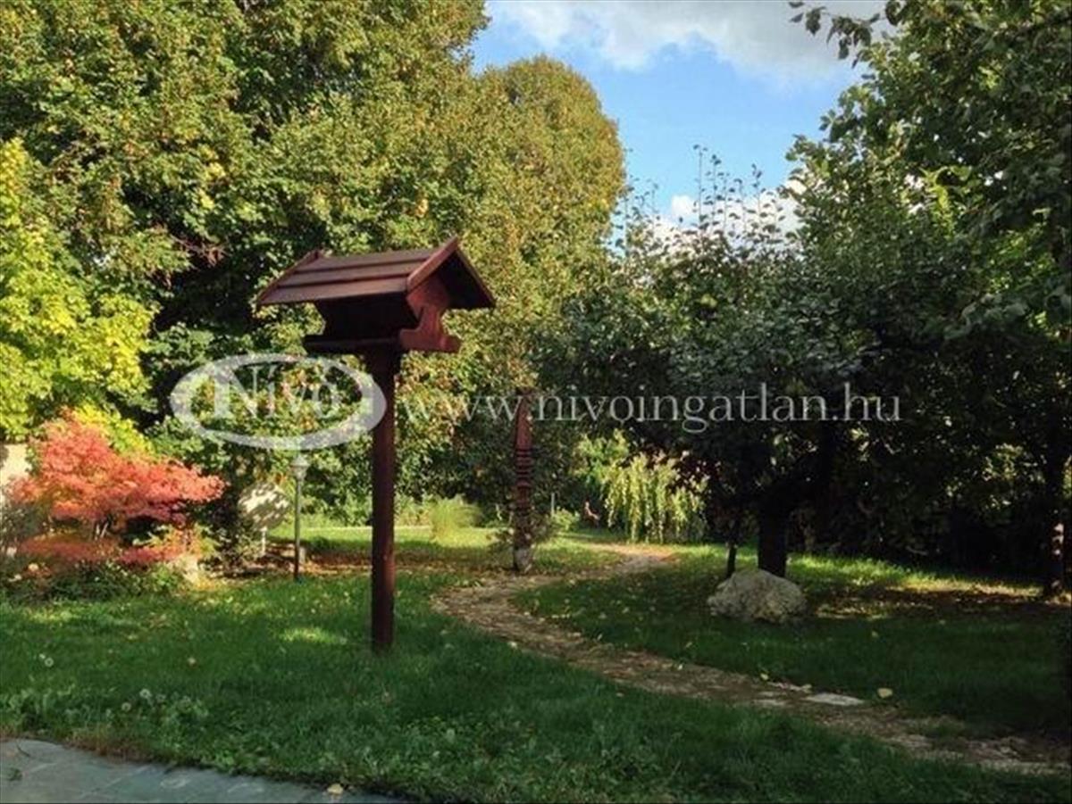 A várpanorámás telek 684 m2-es örökzöldekkel beültetett, fatárolóval, sütögetővel, pergolás kocsibeállóval és 20 m2-es terasszal ellátott.