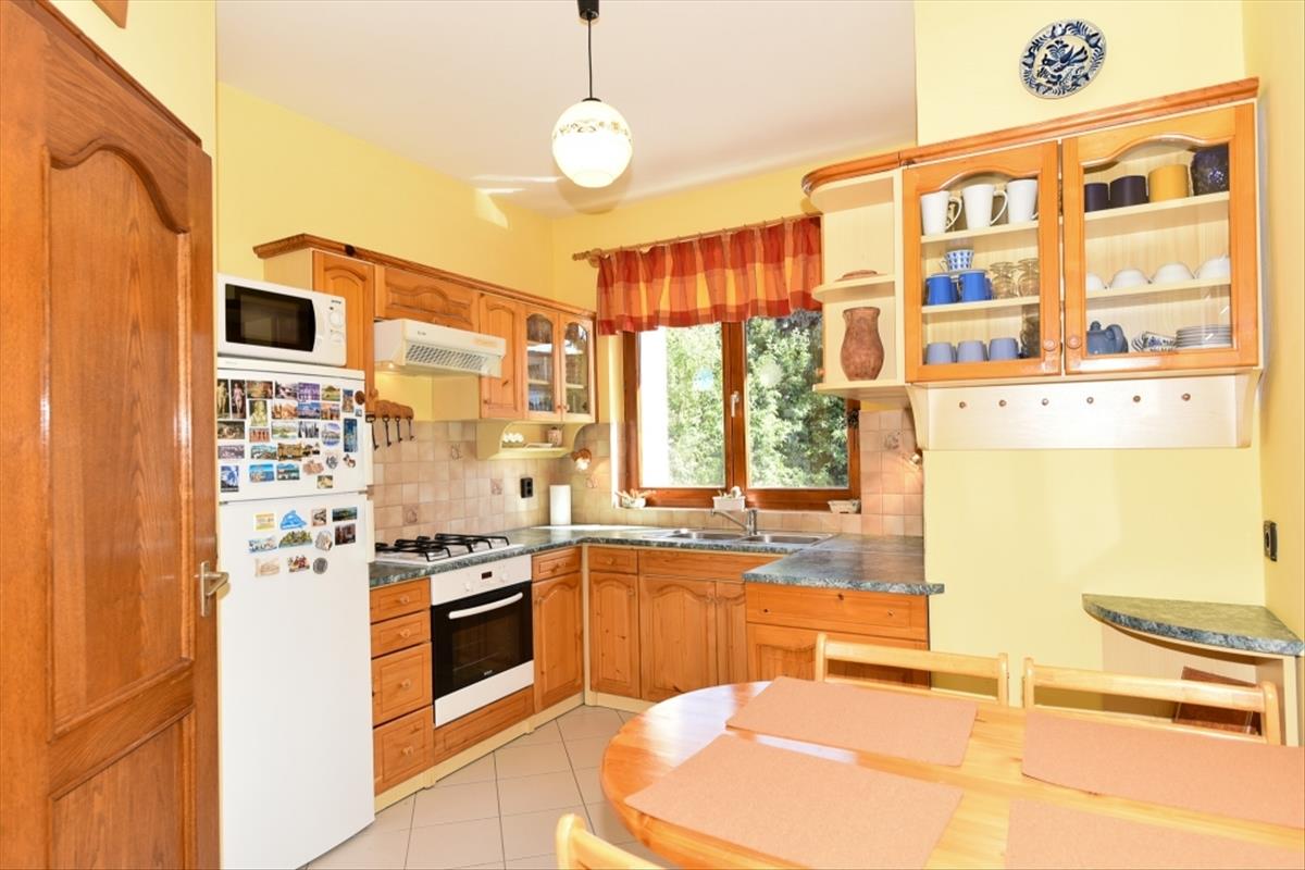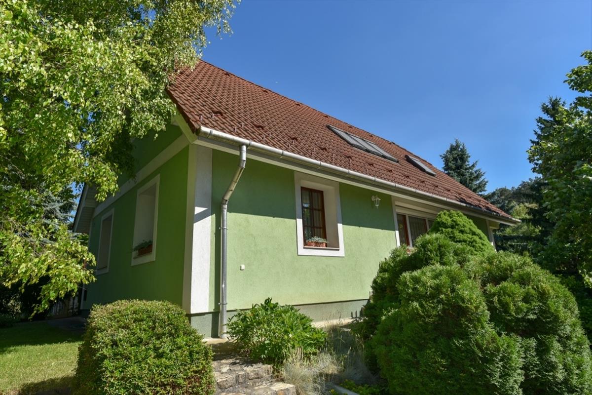A három szintes (alagsor+földszint+tetőtér), déli fekvésű ház nagy, fás telken helyezkedik el, amelynl közvetlen kijárata van a Veszprémvölgyhöz, játszótérhez, a csónakázó dísztóhoz.