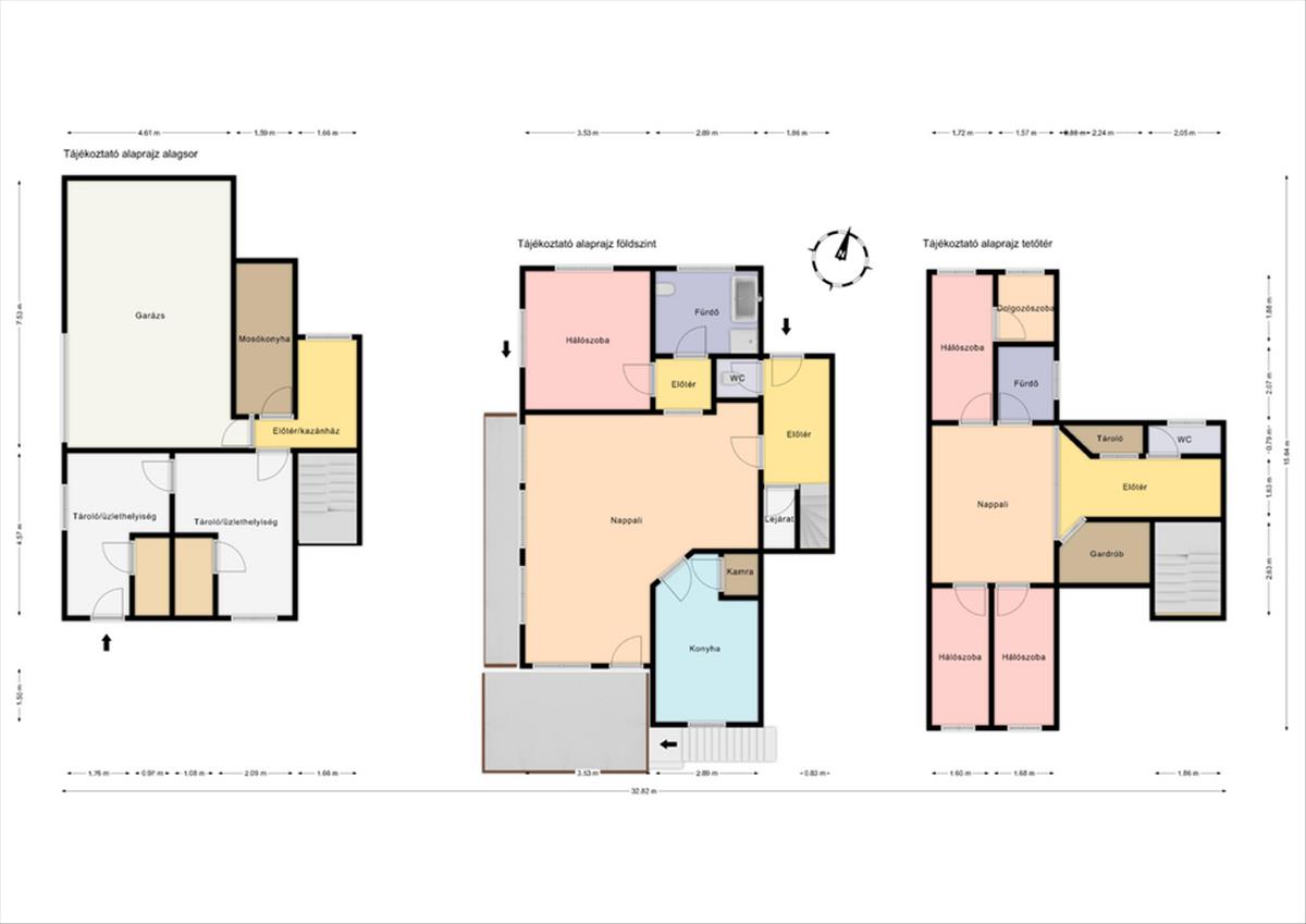 A ház alagsori részében 35 m2-es garázs és üzlethelyiségek, tárolók kaptak helyet, így ez a külön bejáratú szint vállalkozásra is kíválóan alkalmas: