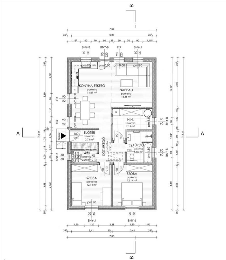 - Háztartási helyiség: 7, 15 m2