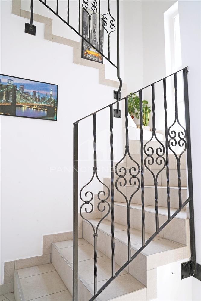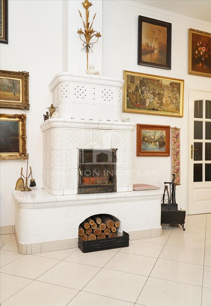 A földszinten egy előszoba, egy tágas szoba, továbbá egy beépített-gépesített konyha-étkező, egy tusolóval felszerelt fürdőszoba, kamra, és egy 38 m2 nagyságú nappali-szoba található padlófűtéssel, hűtő-fűtő klímával és egy gyönyörű cserépkályhával! Ebből a nappaliból nyílik továbbá egy gardróbos hálószoba.