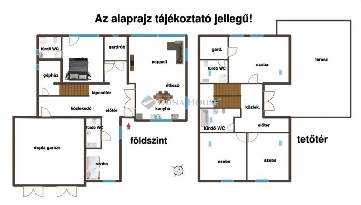 2 gardróbbal, 40 nm terasszal, dupla garázzsal.