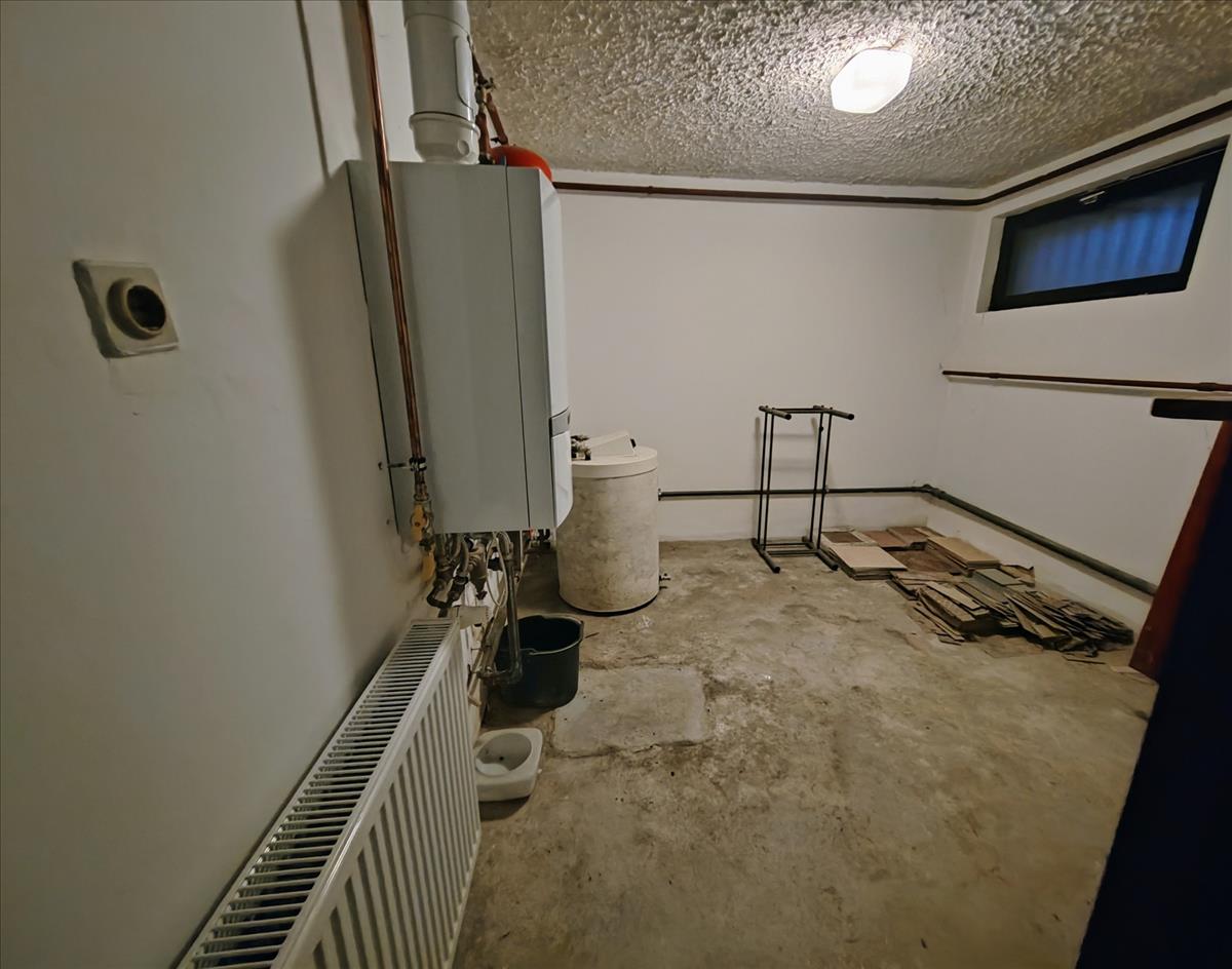 2 állásos garázs, amelyből nyílik egy nagy méretű helyiség, ezáltal 4 autó is elfér vagy ideális műhely-kialakításra valamint kazánház és 2 tároló helyiség.