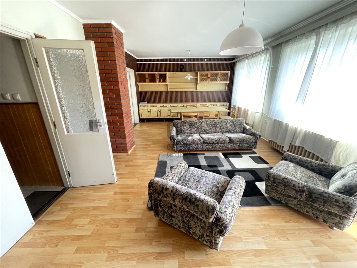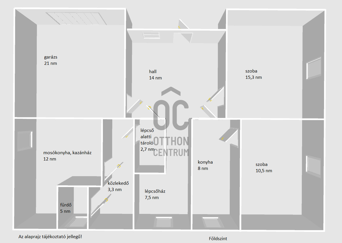 •Alsó szint (90, 8 m²): mosókonyha (vegyes tüzelésű kazánnal), fürdő+WC, közlekedő, hall (teraszkapcsolattal), két szoba