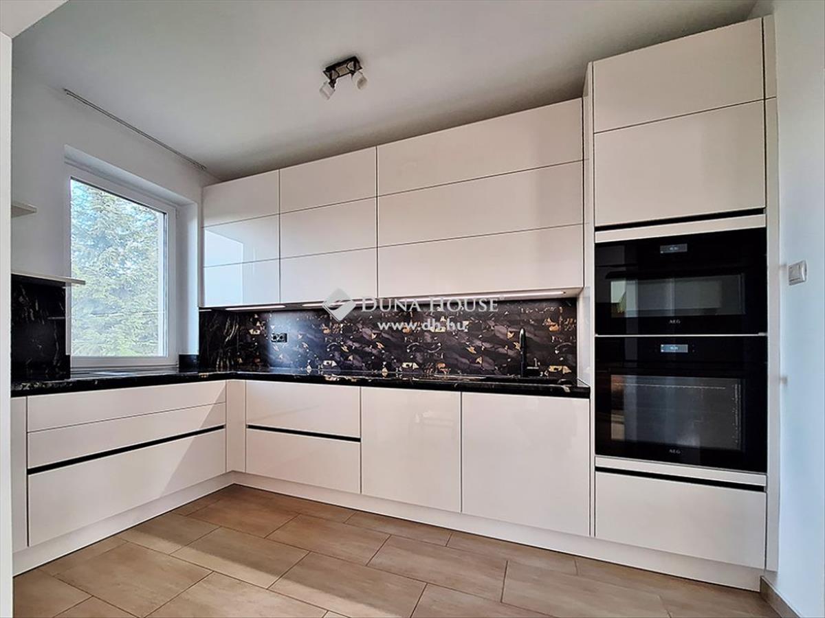 A konyha vadonatúj, minőségi, korszerű gépekkel ellátott. a ház teljes, egyedi bútorzata igény szerint megvásárolható. a magas szintű funkcionalitást garázs, nagy méretű tároló- és háztartási helyiség teszi teljessé.
