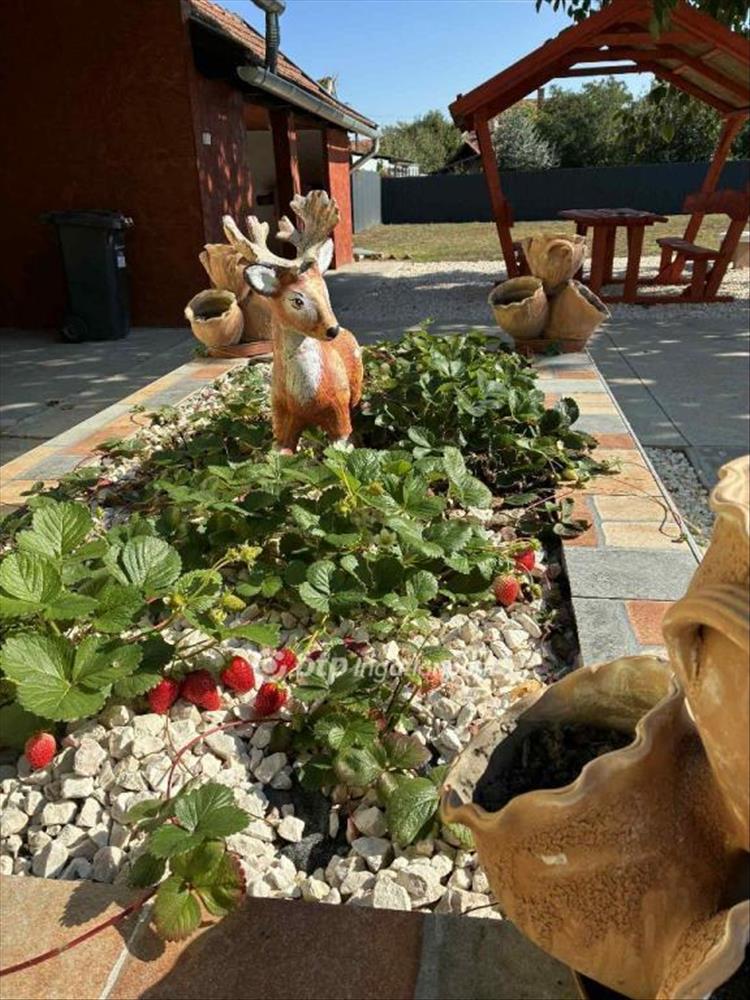 Az ingatlan díszkertjében termő eper található, illetve filagória és egy szalonnasütő. a telek (mely jelenleg is gondosan van karbantartva) elég területtel szolgál különböző gyümölcsfák telepítésére is.