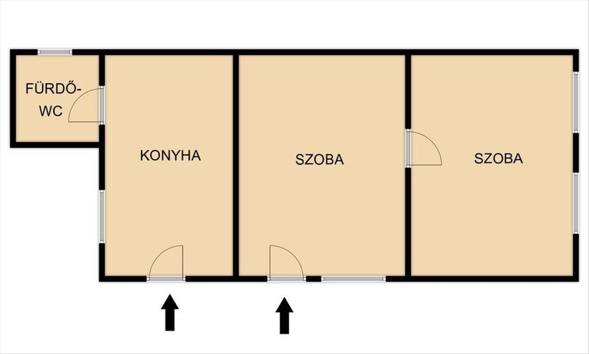 Helyiséglista: 2 szoba, konyha, fürdőszoba-wc.