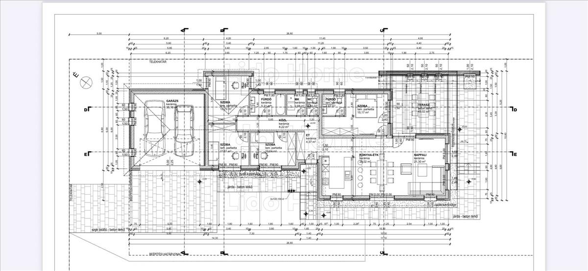 -A házhoz tartozik egy dupla, kétállásos garázs is ami 36 nm , amely kényelmes megoldást nyújt az autók számára.