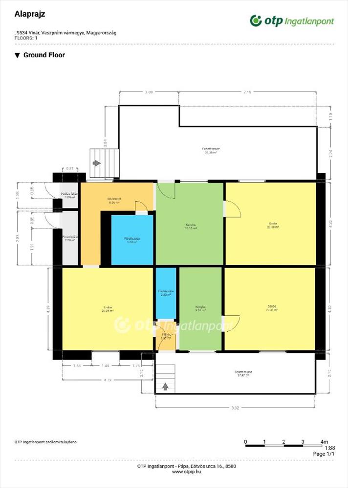 Veszprém vármegye északnyugati részén, Vináron kínálok eladásra szomszédoktól távol eső, csendes környezetben, remek elrendezésű, tágas belső terekkel, nagy szobákkal, rendelkező, igazán otthonos, jó állapotú, 156, 9 m2-es, 2 lakrészes családi házat, 3298 m2-es telken. Vinár Veszprém vármegye északnyugati részén fekszik, északi határa egybeesik a megyehatárral is: északi szomszédja, Szergény már Vas vármegyéhez tartozik. Pápától mintegy 23 kilométerre nyugatra, Celldömölktől hasonló távolságra keletre helyezkedik el, a Marcal folyó árterében. Vonattal megközelíthető a Győr-Pápa-Celldömölk vasútvonalon. Az ingatlan elrendezés tekintetében 2 lakrészből áll: az egyik lakrészben található 3 teljes értékű szoba, konyha és étkező, fürdőszoba és illemhelyiség valamint egy előszoba és 1 fedett terasz, a másik lakrész 1 szobából, konyha és étkezőből, fürdőszoba és illemhelyiségből valamint egy előszobából és 1 fedett teraszból áll. Az épület alatt nagy belmagasságú pince található, tetőtere beépíthető. a ház szobái parkettásak, a többi helyiség kerámia burkolatú. a fürdőszobák kényelmes, nagyméretűek. a fűtés kályhákkal biztosított. a meleg vizet villanybojler szolgáltatja. Az ingatlant, folyamatosan újították, szépítették, minden része felújításon esett át. a ház kiváló statikai és szerkezeti állapotú, nyílászáróinak cseréje megtörtént, tágas, világos terek jellemzik, minden helyiségére jellemző, hogy világos. Tetőszerkezete kifogástalan állapotú, beépíthető. Udvara körbekerített, füvesített. a házhoz tartozó nagy méretű telken külön álló 2 kis ház, ásott kút. Találhatóak. Az otthonosan kialakított családi házat ajánlom mindazon vevők részére, akik egy szép, családias, nyugodt részen kívánnak élni, távol a város zajától. a településen minden megtalálható, ami a hétköznapokban szükséges lehet. Az ingatlantól nem messze minden elérhető, bolt, buszmegálló. a ház csendes, forgalommentes utcában áll, elhelyezkedése szempontjából meglehetősen jó adottságokkal rendelkezik. Ajánlom mindazon érdeklődők figyelmébe, akik falun, nyugodt családias környezetben keresnek kényelmes otthont, családi háznak, amely remek elosztású vagy az ingatlan akár üzleti szempontból is jó befektetés lehet. Az OTP Ingatlanpont teljes körű ügyintézéssel áll az eladók és a vevők rendelkezésére. a kínálatunkból választott ingatlan finanszírozásához kedvezményes hitelkonstrukciót kínálunk. Ez az ingatlan megfelel a fix 3%-os Otthon Start Hitelprogram feltételeinek! Az adásvételi szerződés megkötéséhez igény szerint megbízható ügyvédi közreműködést biztosítunk, és segítséget nyújtunk az adásvételhez kapcsolódó ügyek intézéséhez is. Az ingatlanról készült alaprajz, illetve fényképfelvételek az OTP ingatlanpont szellemi tulajdonát képezik. Amennyiben felkeltette érdeklődését az általam kínált ingatlan, keressen bizalommal. FIX 3% lakáshitelre megvehető