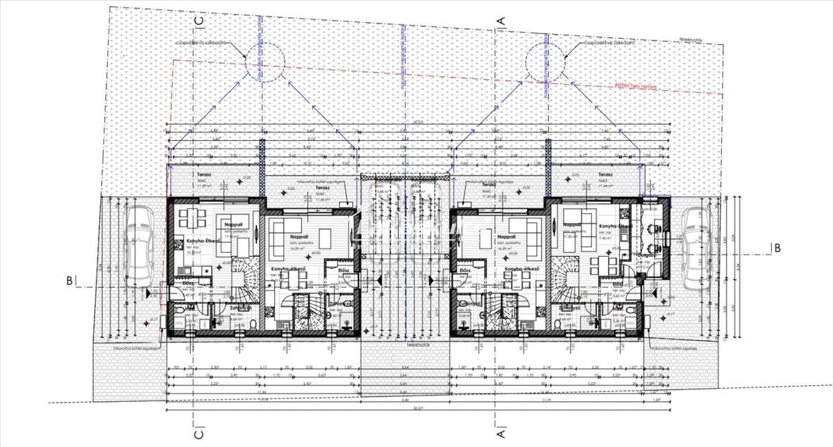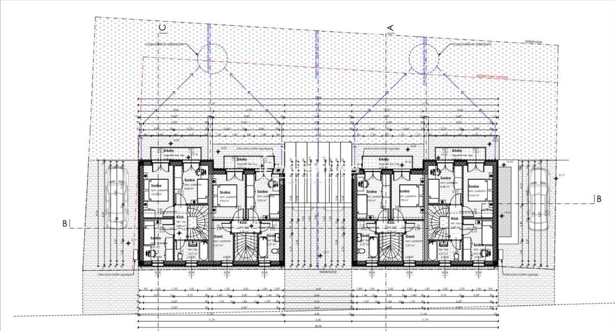 4 külön bejáratú, kétszintes lakás saját kertkapcsolattal