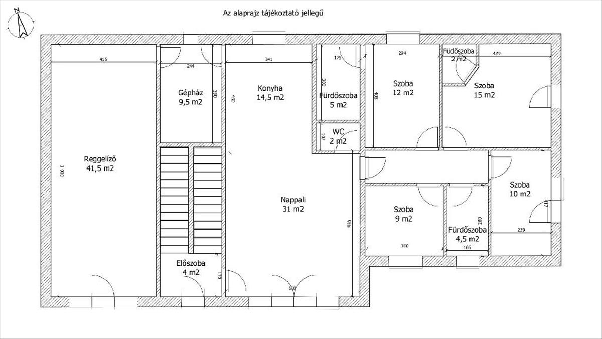 Emelet: Nyolc külön bejáratú vendégszoba, saját fürdőszobákkal.