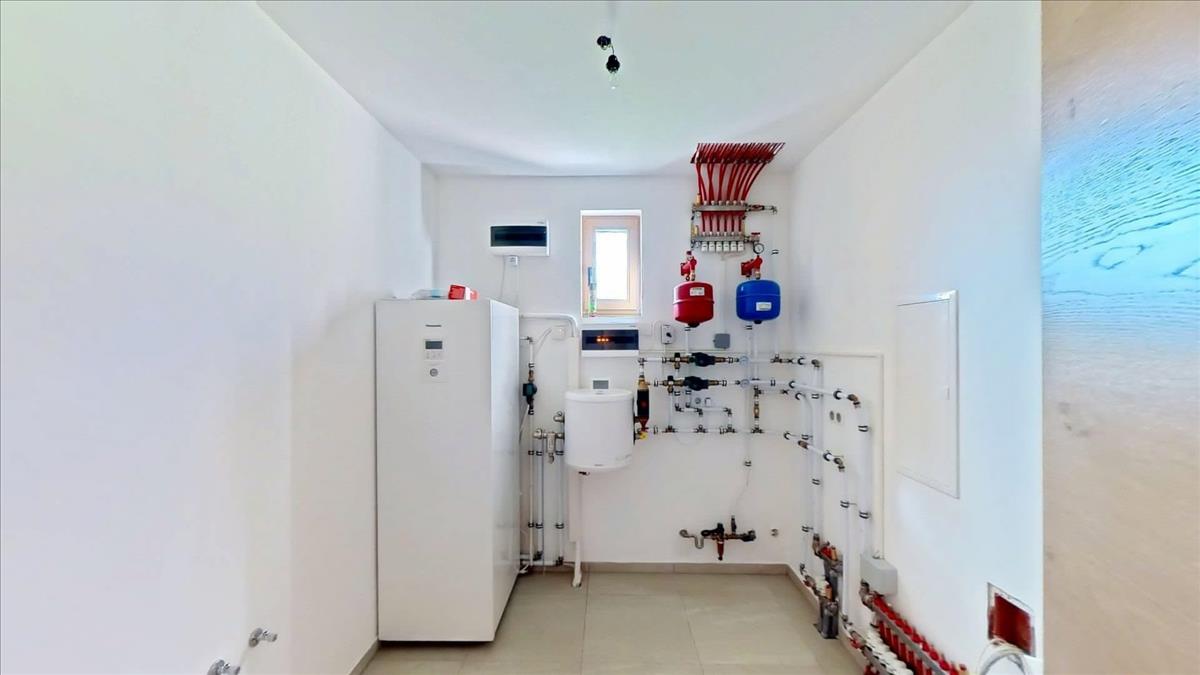 A ház fűtése megújuló energiaforrásokkal működik, így nemcsak környezetbarát megoldást kínál, de egész évben garantálja a kellemes hőmérsékletet.