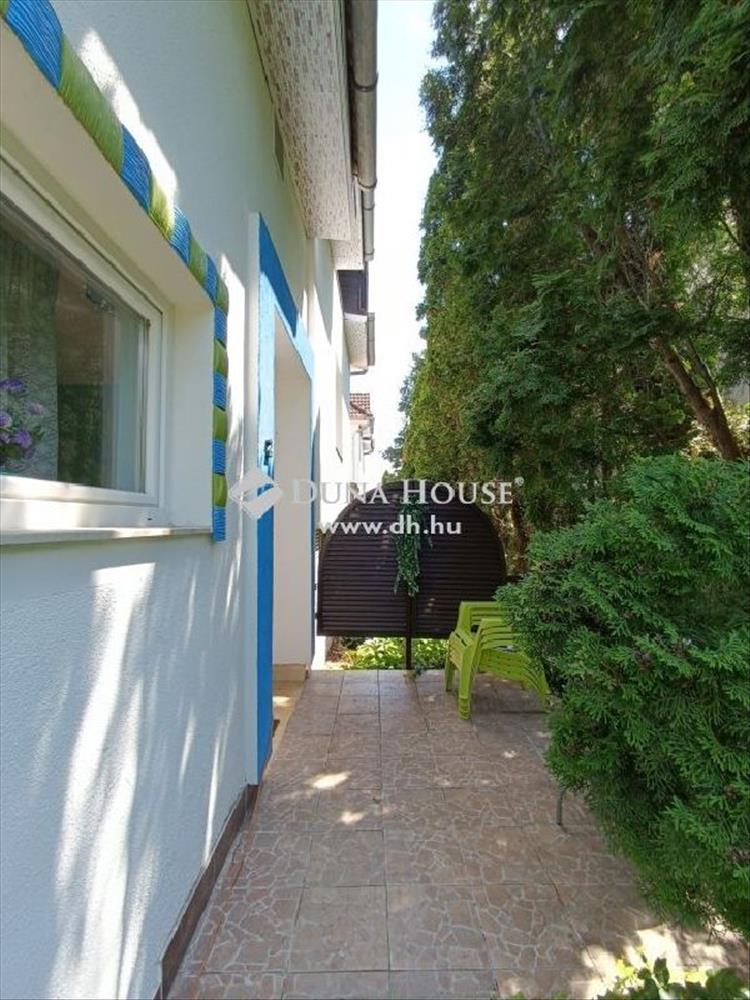 Szépen kialakított, fákkal, díszcserjékkel, virágokkal telepített előkertje védi a ház nyugalmát tekintetektől és zajtól.