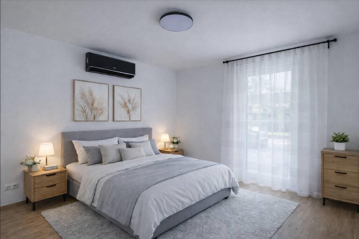 A ház fűtését és hűtését 6 db inverteres aux klíma biztosítja amely a fűtési szezonban gazdaságos H tarifás áramről üzemeltethető. Ezen kívül elektromos radiátor kiállások a fürdőben pedig törölköző szárítós radiátor megtalálható. a melegvizet 2 db WIFI-s villanybojler szolgáltatja. a folyosó részen hatalmas beépített szekrénynek lett kialakítva hely ami megkönnyíti a tárolást a lakásban.