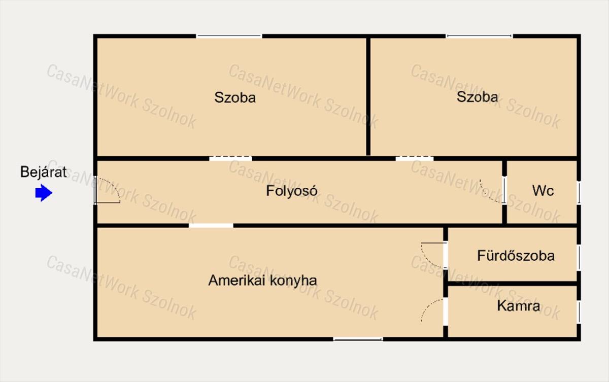 - előszoba, tágas konyha ebédlővel, háztartási helység, 2 külön nyíló szoba, fürdőszoba és külön illemhelyiség került kialakításra