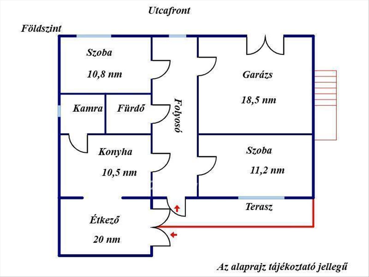 A földszinten található 2 tágas szoba, konyha nagy étkezővel (amerikai konyhás nappalinak is ideális), kamra, zuhanyzós fürdőszoba WC-vel, garázs. Az emelet külső lépcsővel közelíthető meg, így akár külön lakrész is lehet. Hatalmas, világos nappalit találunk itt klímával. Ezenkívül 2 szoba, kádas fürdőszoba külön WC-vel, konyha és kamra is kialakításra került.