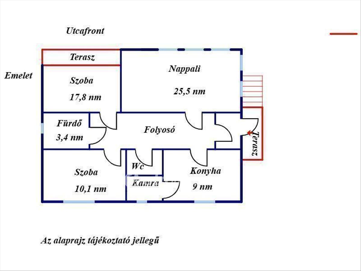 A földszinten található 2 tágas szoba, konyha nagy étkezővel (amerikai konyhás nappalinak is ideális), kamra, zuhanyzós fürdőszoba WC-vel, garázs. Az emelet külső lépcsővel közelíthető meg, így akár külön lakrész is lehet. Hatalmas, világos nappalit találunk itt klímával. Ezenkívül 2 szoba, kádas fürdőszoba külön WC-vel, konyha és kamra is kialakításra került.