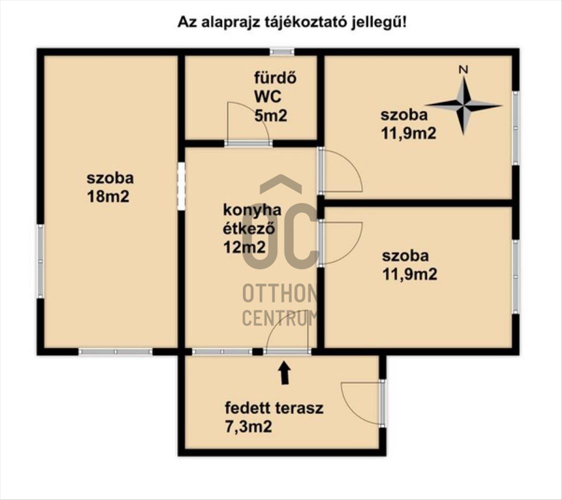 A lakótér 60m2-es, plusz egy 7, 3m2-es déli tájolású terasz is tartozik hozzá.