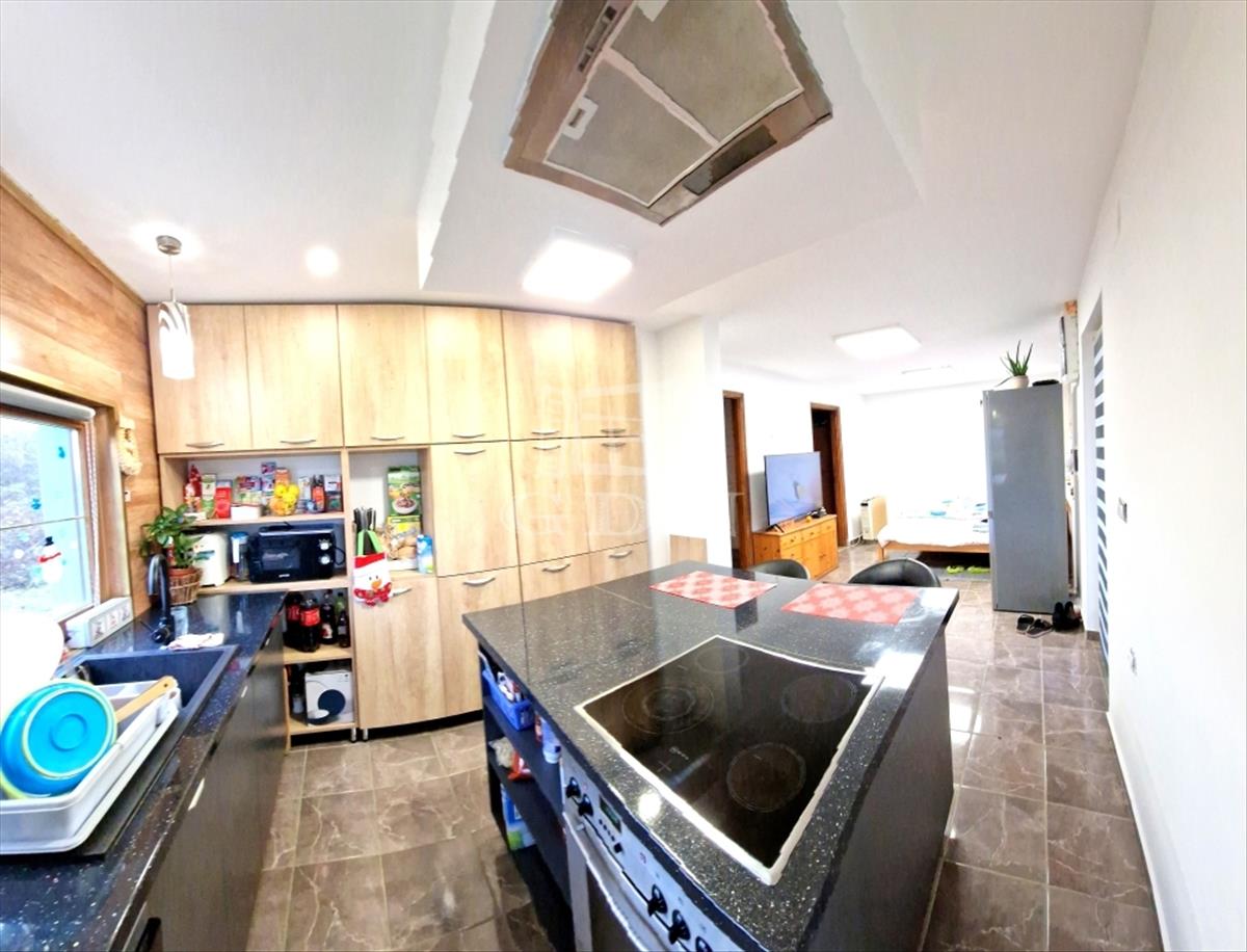 A házban jelenleg található egy világos, gépesített nagy konyha főzőszigettel - étkező helyiség, egy hálószoba és egy tágas fürdőkádas fürdőszoba.