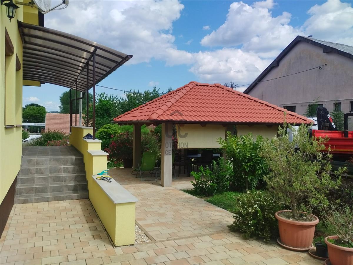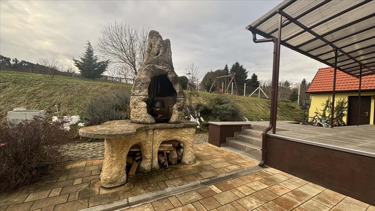 Fedett nagyméretű terasz, melléképület, pergola, áll a lakók rendelkezésére.