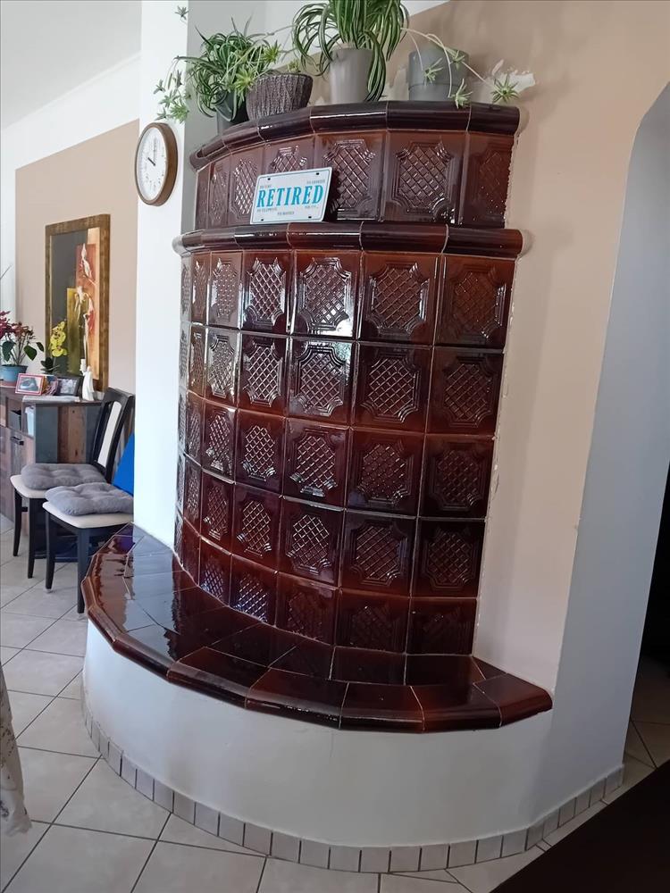 -Hangulatos cserépkályha – meghitt téli estékhez.