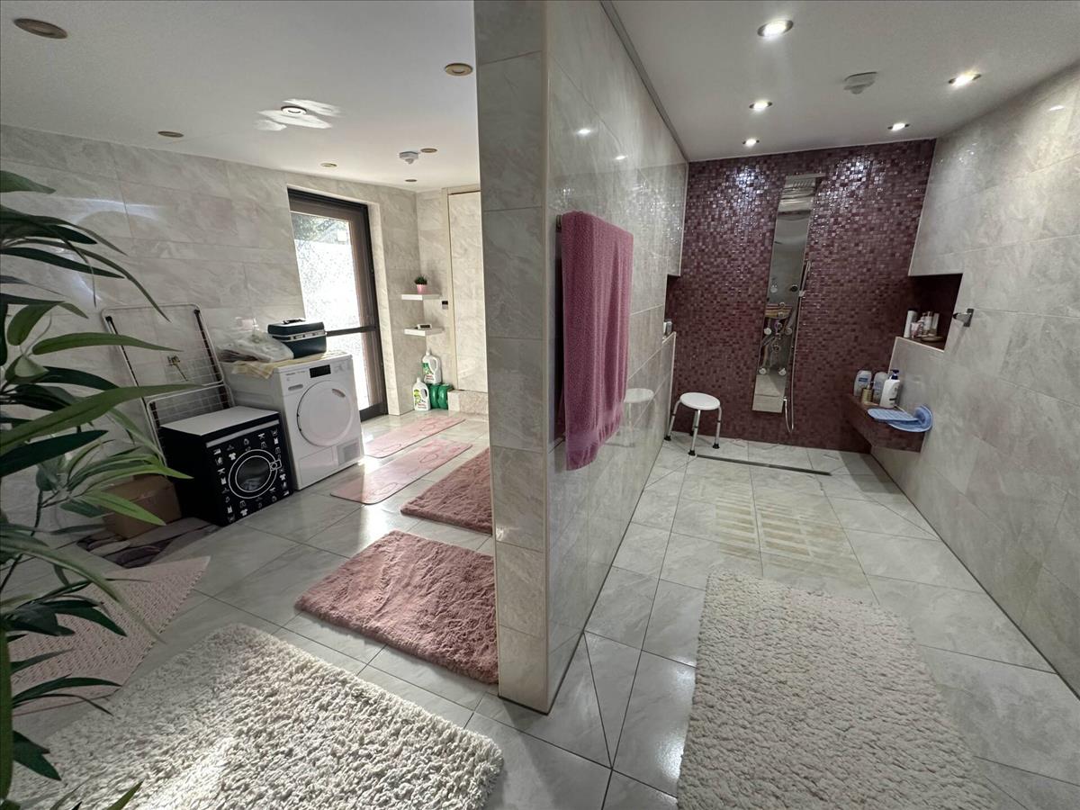 A medencéhez való közlekedést leegyszerűsíti az alsó fürdőszoba, így nem kell az egész házon átmenni vizes lábbal.