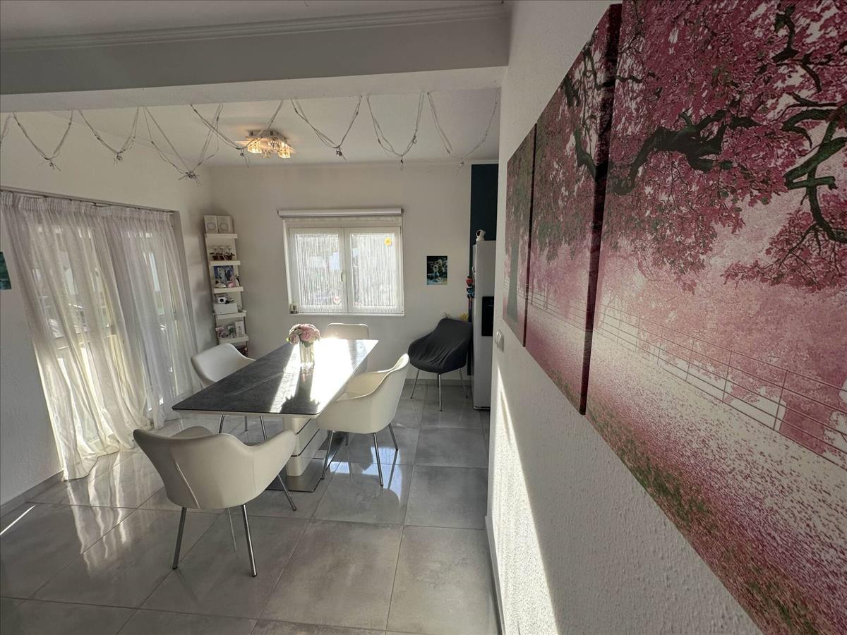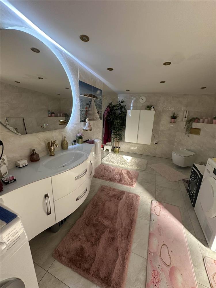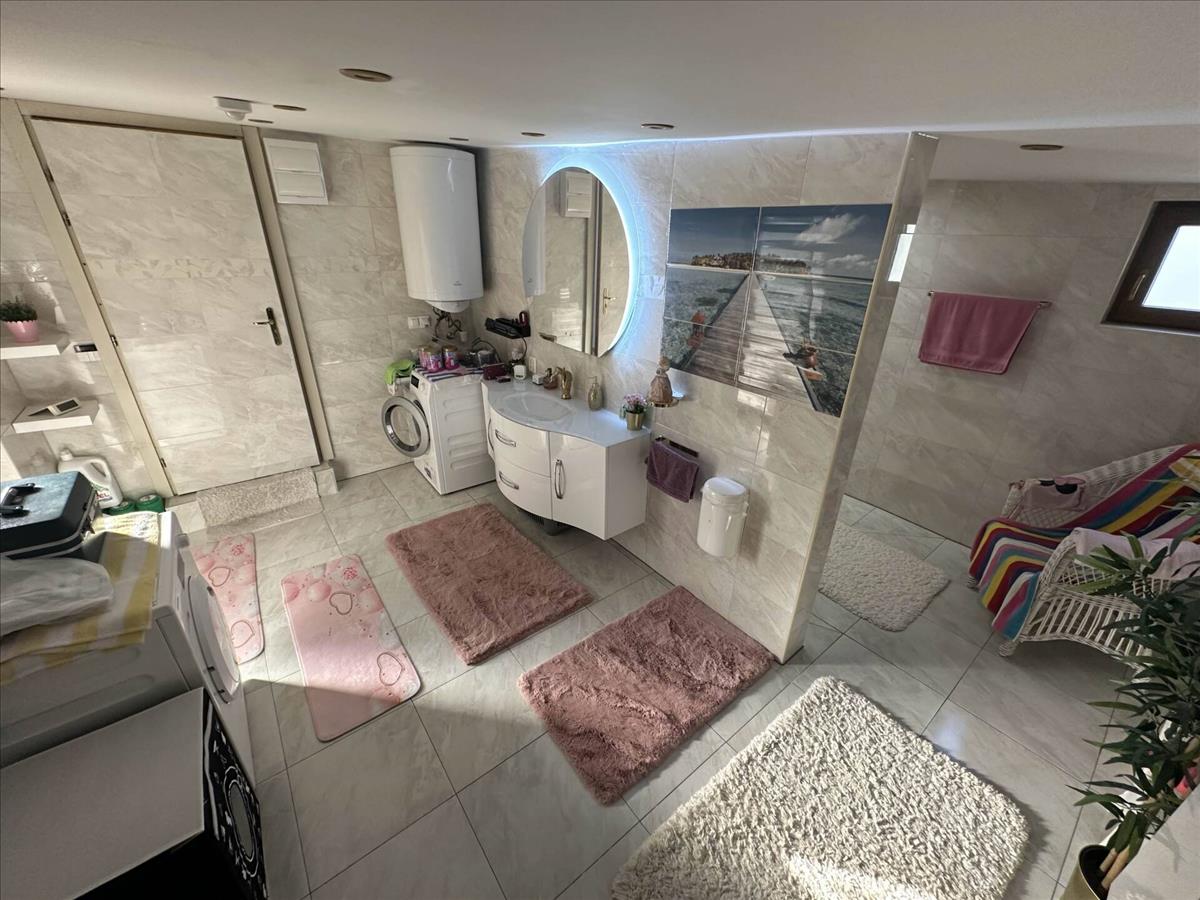 Elosztása kiváló, mivel minden helyiség külön nyíló. a nappali déli és nyugati fekvésű, így rendkívül világos, egy légtérben van az étkezővel, otthonos érzést adva a háznak. a folyosóról nyílnak a hálók és két fürdőszoba is, így a reggeli készülődést nem akadályozza sorbanállás. a burkolat a hálószobákban magas karcállóságú, kopásálló laminált parketta, a ház többi része járólapos.