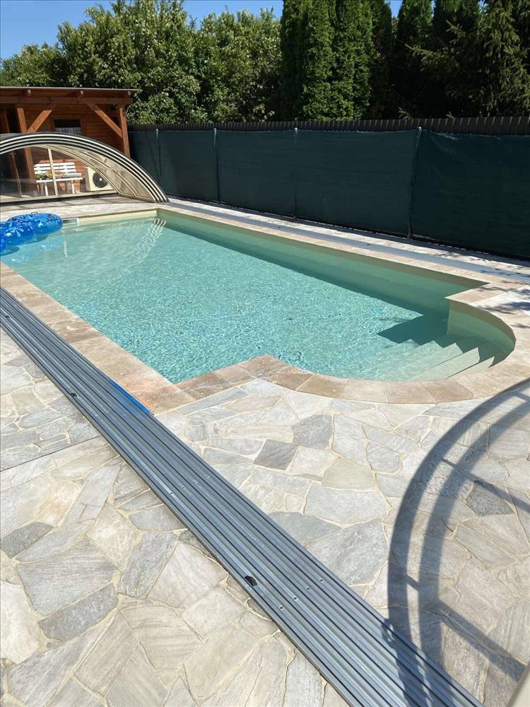 A telek sík, csendes helyen van, az udvart betonkerítés veszi körül, így a nyugalom garantált. 2008-Ban építette a könnyűszerkezetes (fa) épületet tulajdonosa, majd 2018-ban bővítette egy plusz fürdőszobával, hogy megkönnyítse a medencéhez való közlekedést. Külső hőszigetelése 15 cm-es, mely sokat segít a költségeket alacsonyan tartani.