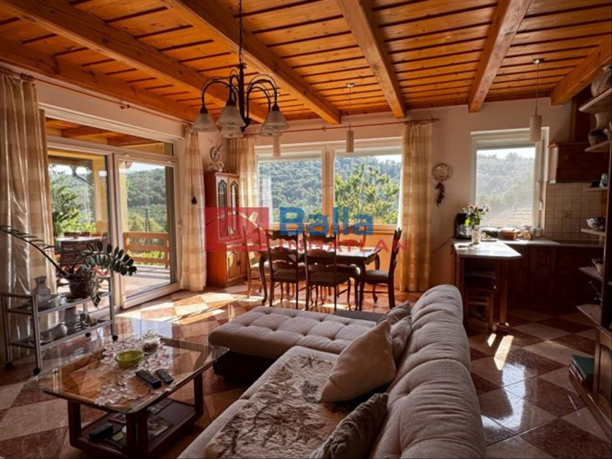 A nappali hatalmas ablakaiból csodálatos panoráma nyílik az erdőre, délnyugati tájolással, a szobák északkeleti fekvésűek.
