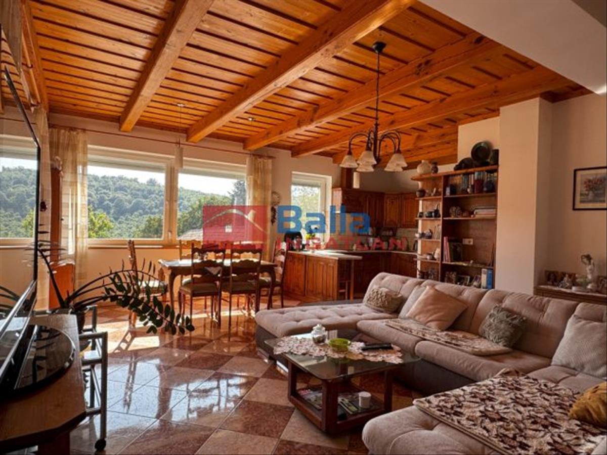A lakószint a garázs felől belső és egy külső lépcsővel is megközelíthető, területe 92 m2 + 16, 3 m2 erdőre panorámás fedett terasz.