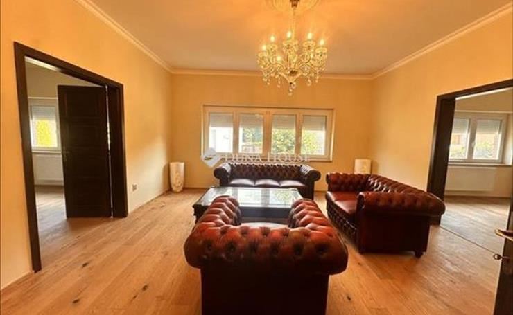 Földszinten: egy tágas és igazán ízlésesen berendezett gyönyörű cserépkályhával ellátott nappali, három egymásból nyíló szoba, ami külön-külön is megközelíthető, konyha ami kapcsolatban áll az étkezővel, a fürdőszoba, melyből az egyik közvetlenül a gardrób mellett áll, különálló wc, optimális méretű spejz, és egy hatalmas, világos előszoba, a gyönyörű fából készült lépcsőházzal.
