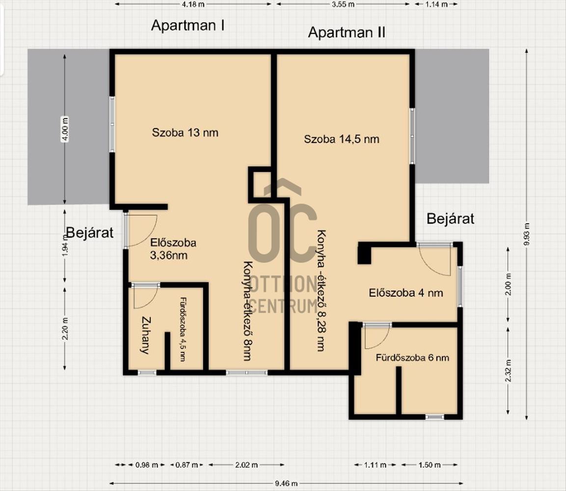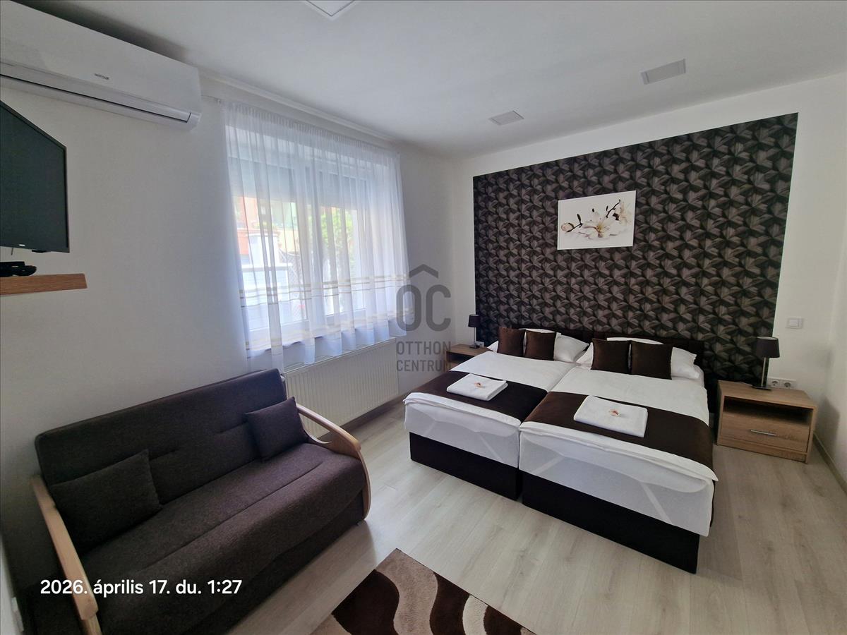 Egy nagyszerű befektetés Zalaegerszeg szívében! Eladásra kínálunk egy ingatlant ami nem csak egy lakó alkalmatosság, hanem egy igazán jó befektetés is lehet. Az ingatlant a tulajdonosok panzióként üzemeltetik. Jogilag, tulajdoni lap szerint az ingatlan társasházi lakásként szerepel, mely két különálló lakó részből áll. Mindkét lakórész egy tágas szobából, konyha-étkező és egy zuhanykabinos fürdőszobából áll. Mindkét lakrész előtt kis hangulatos terasz található, illetve az zárt udvaron belül 3-4 darab autóbeálló is rendelkezésre áll az oda érkező vendégek számára és mindezt a belvárosban.
