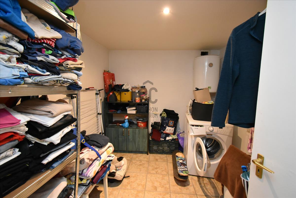 - Az alsó szinten nappali, konyha, épített zuhanyzós fürdőszoba, mosókonyha és praktikus tároló található.