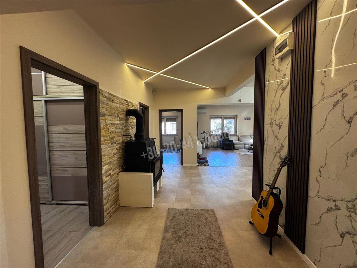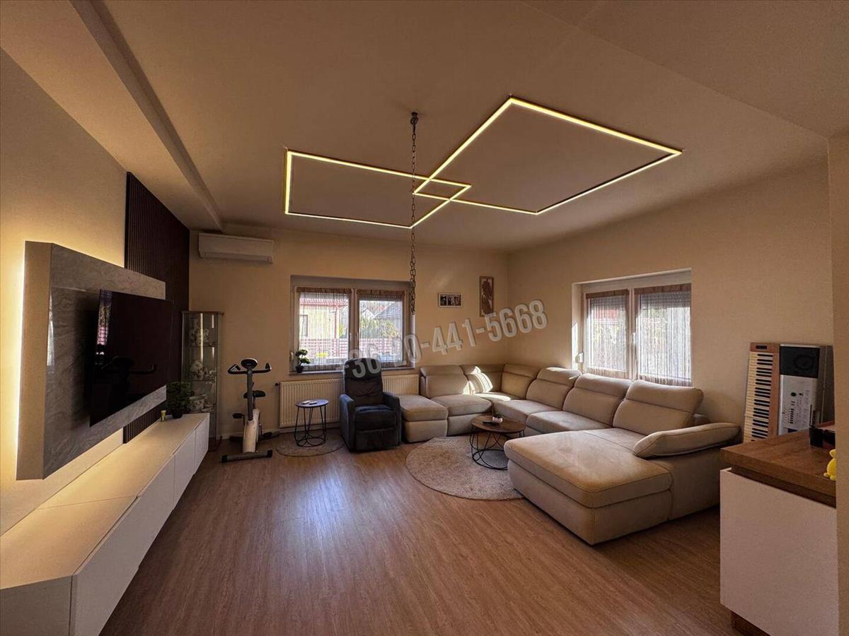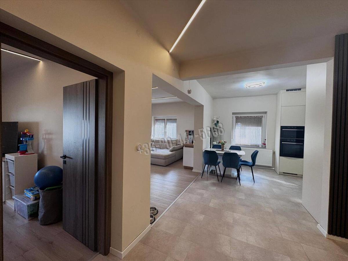 A belső terek kialakítása tágas, modern és kényelmes, ahol a funkcionalitás és az otthonos hangulat tökéletesen találkozik. Az ingatlan központi része a tágas amerikai konyhás nappali + étkező, ahol az új, gépesített konyhabútor, az igényes burkolatok és a kellemes térérzet igazán élhető otthont teremtenek.