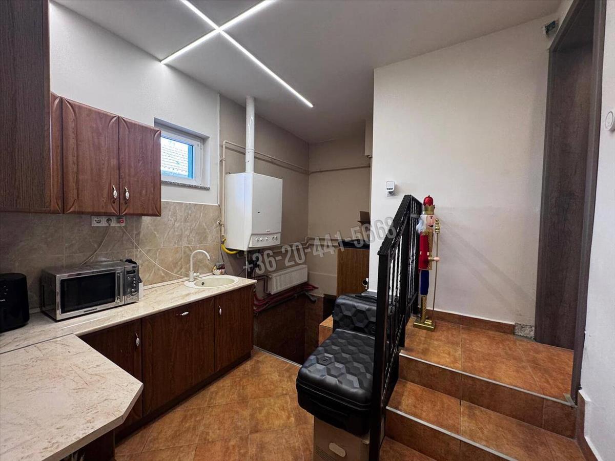 Műszaki szempontból is kiváló választás: a fűtésről kombi gázkazán gondoskodik, amelyet a nappali részben található kandalló egészít ki, mivel az is csatlakozik a központi fűtés rendszeréhez (radiátor).